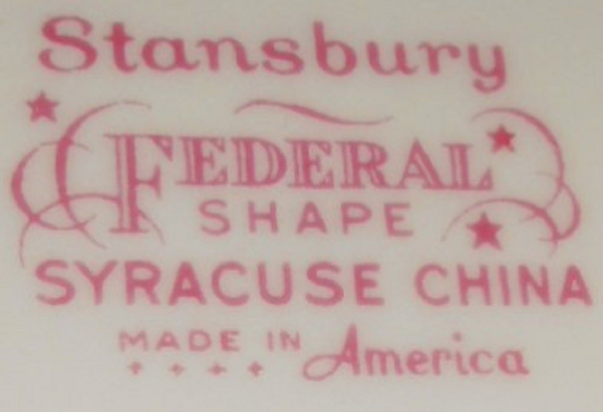 This is a set of (3) 6 1/2" Dessert or B B Plates from Syracuse in the Stansbury Pattern with the Gold Trim and in the Federal Shape - Made in the USA circa 1940s-60s. They are in very good pre-owned condition with little sign of having been used - just a few utensil marks...and the gold trim is also in good condition with little to no sign of any wear.***White spots in photos from lighting and camera***