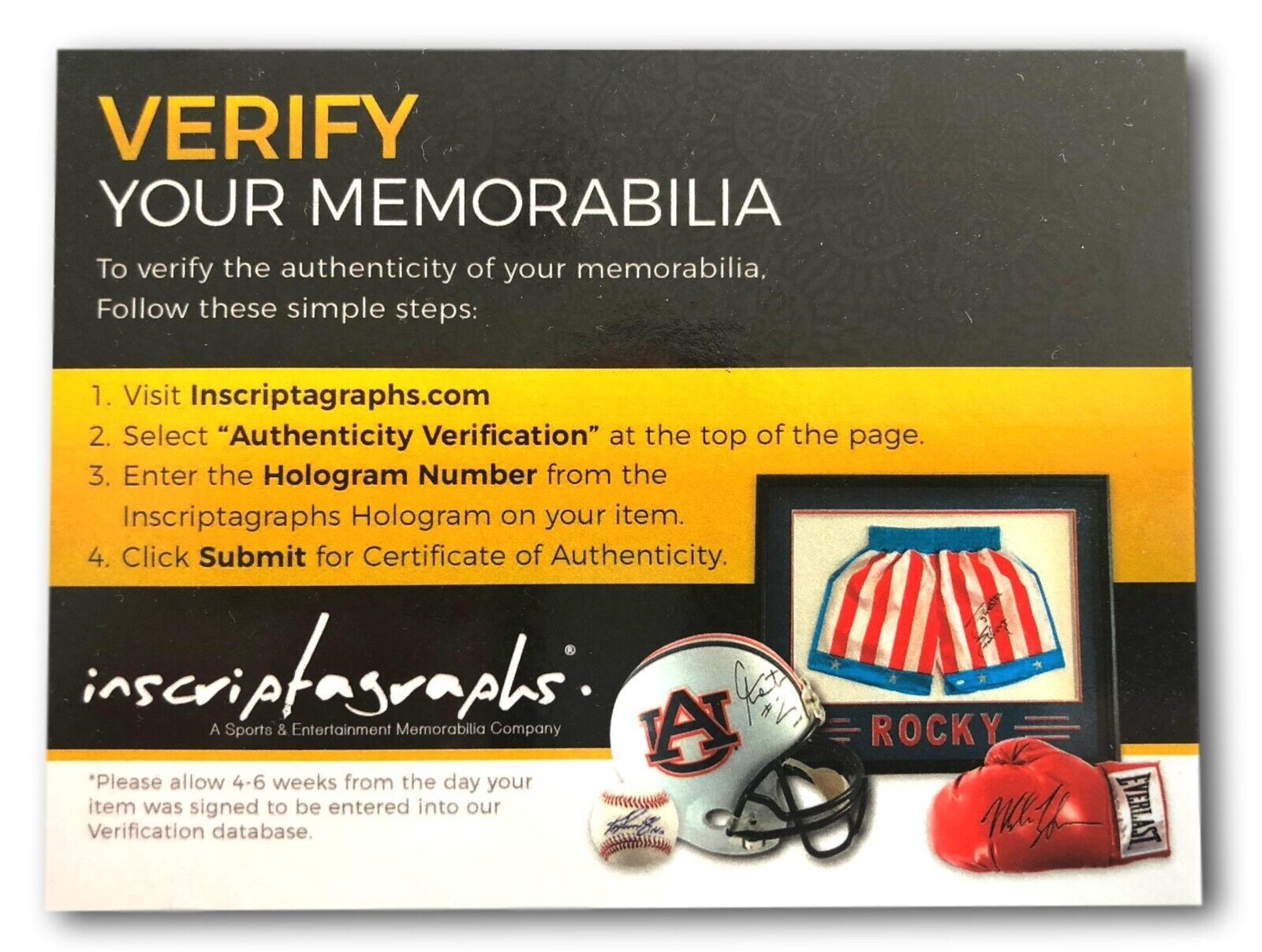 Inscriptagraphs is proud to only authenticate items that are witnessed autographs in the presence of a company representative. Never will we authenticate 3rd party items based on an "opinion?. Never do you have to worry about the authenticity of our collectibles as we pride ourselves in our secure state of the art, industry-leading authentication system.