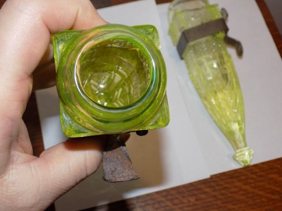 Vintage Pair of Uranium Glass Car Vases with and 13 similar items