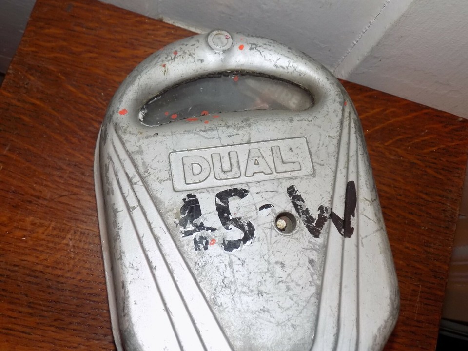 ounces. It needs a cleaning and has grease spots. Has 45-W on one side. Put a