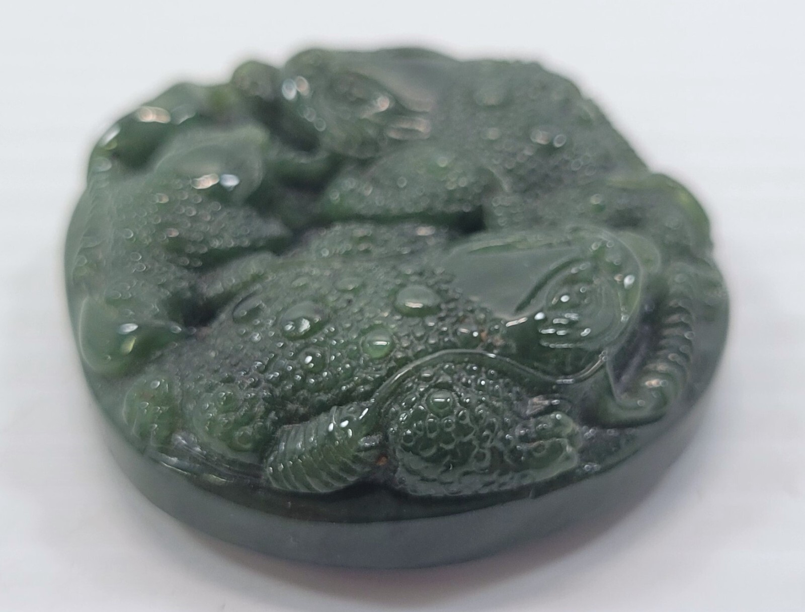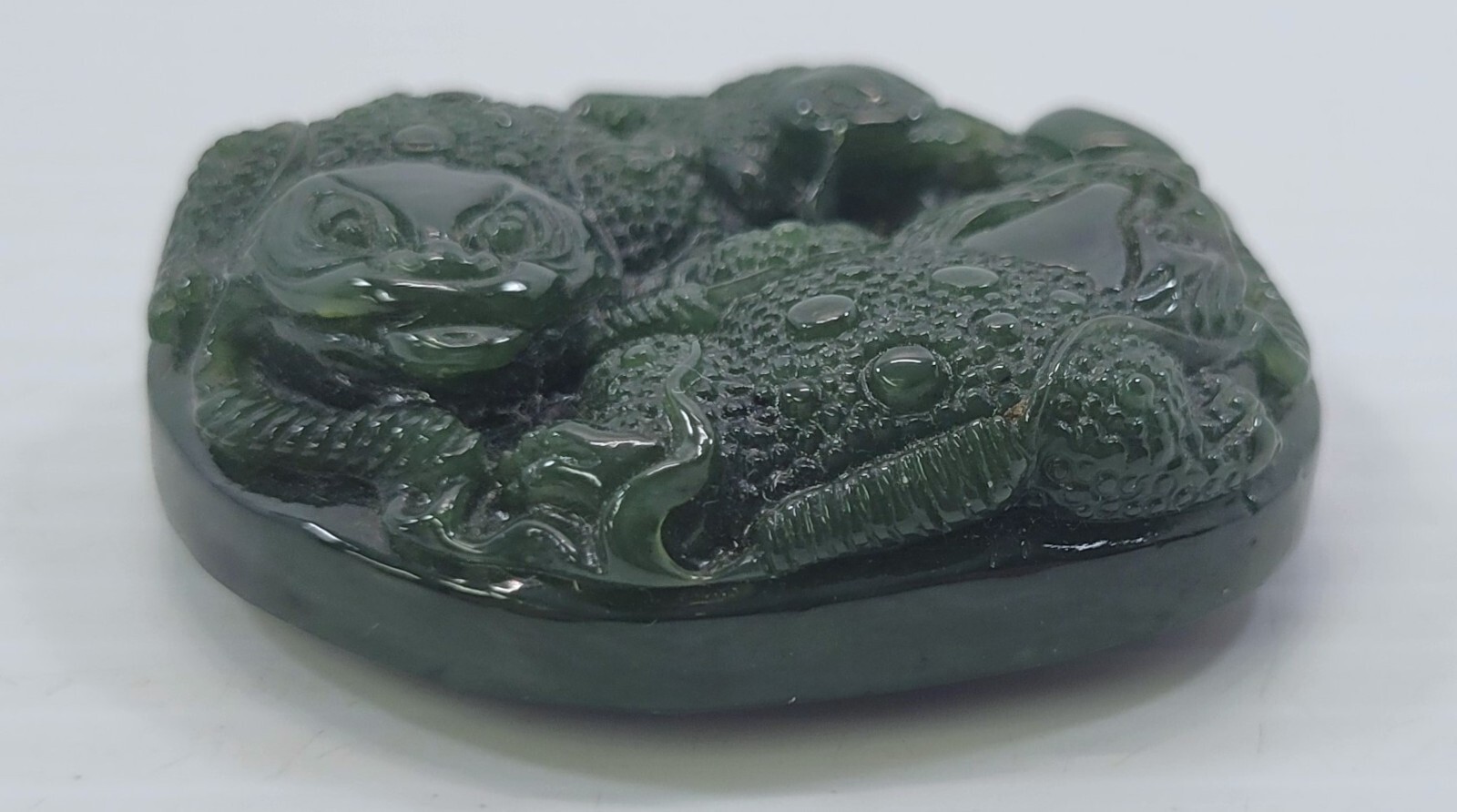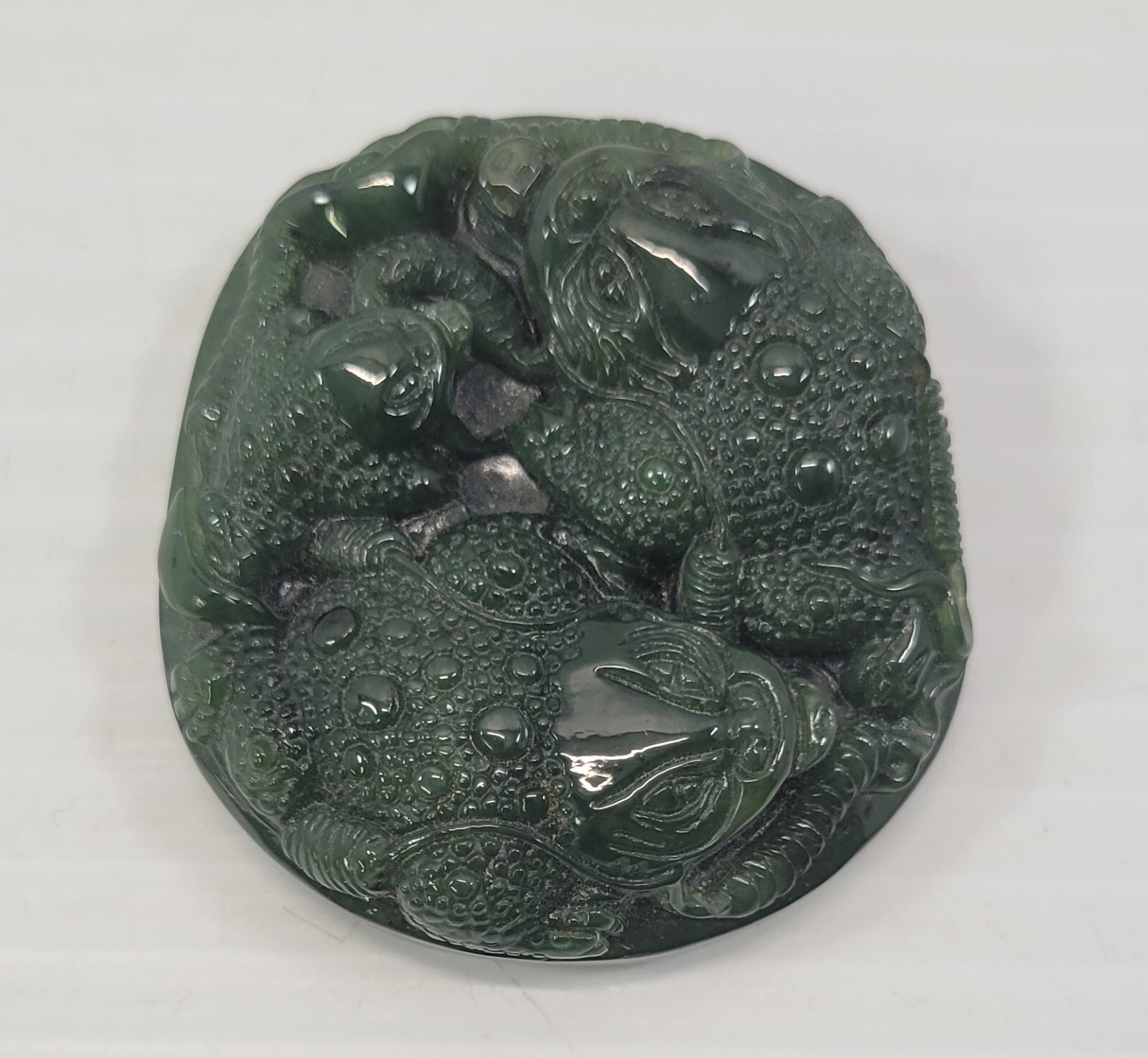 *C51) Three-legged Chinese Prosperity Toads Money Frogs Canadian Jade Pendant