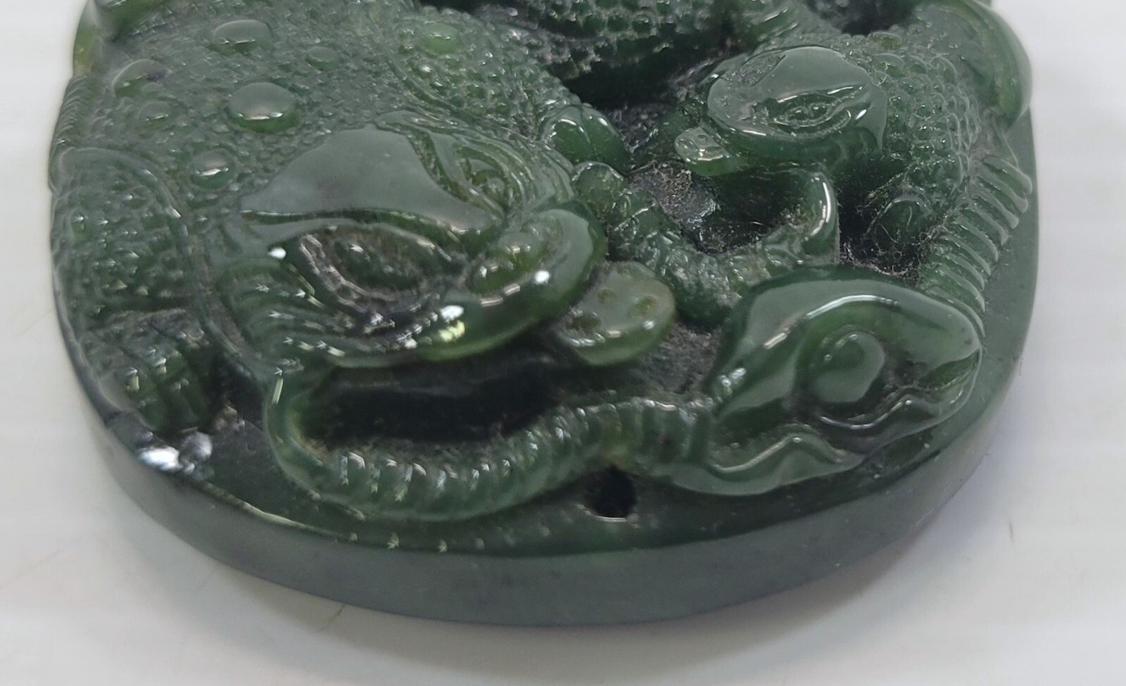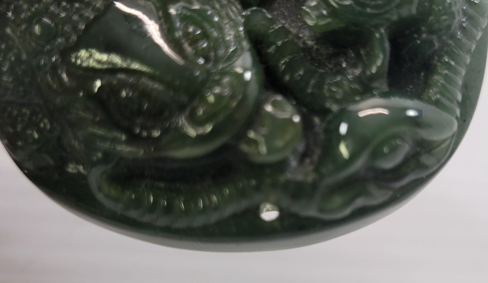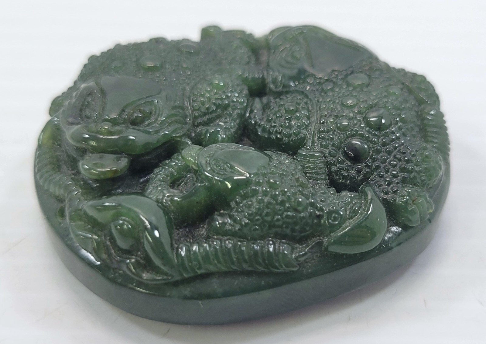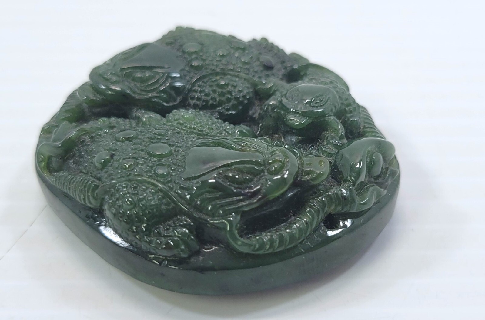 *C51) Three-legged Chinese Prosperity Toads Money Frogs Canadian Jade Pendant