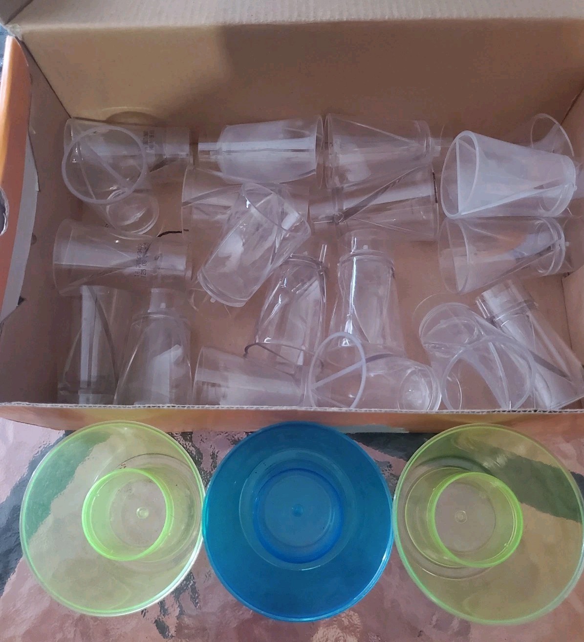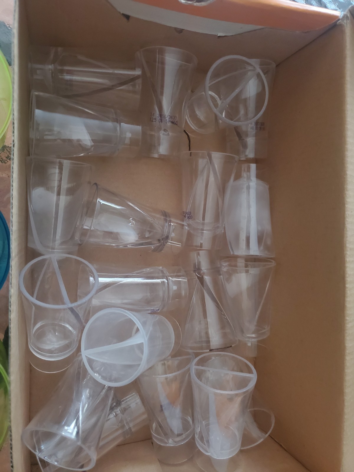This lot is for 3 plastic bomb cups and approx 19 split shot glasses (plastic). The shot glasses are split in two so you can make a shot with two ingredients. These were saved from premixed shots that we had purchased.