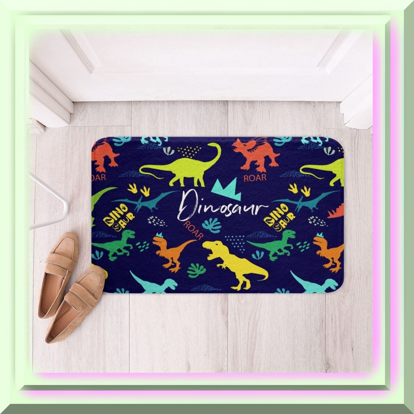 Colorful Dinosaur Kids Bath Mat Non-Slip Bathroom Rug