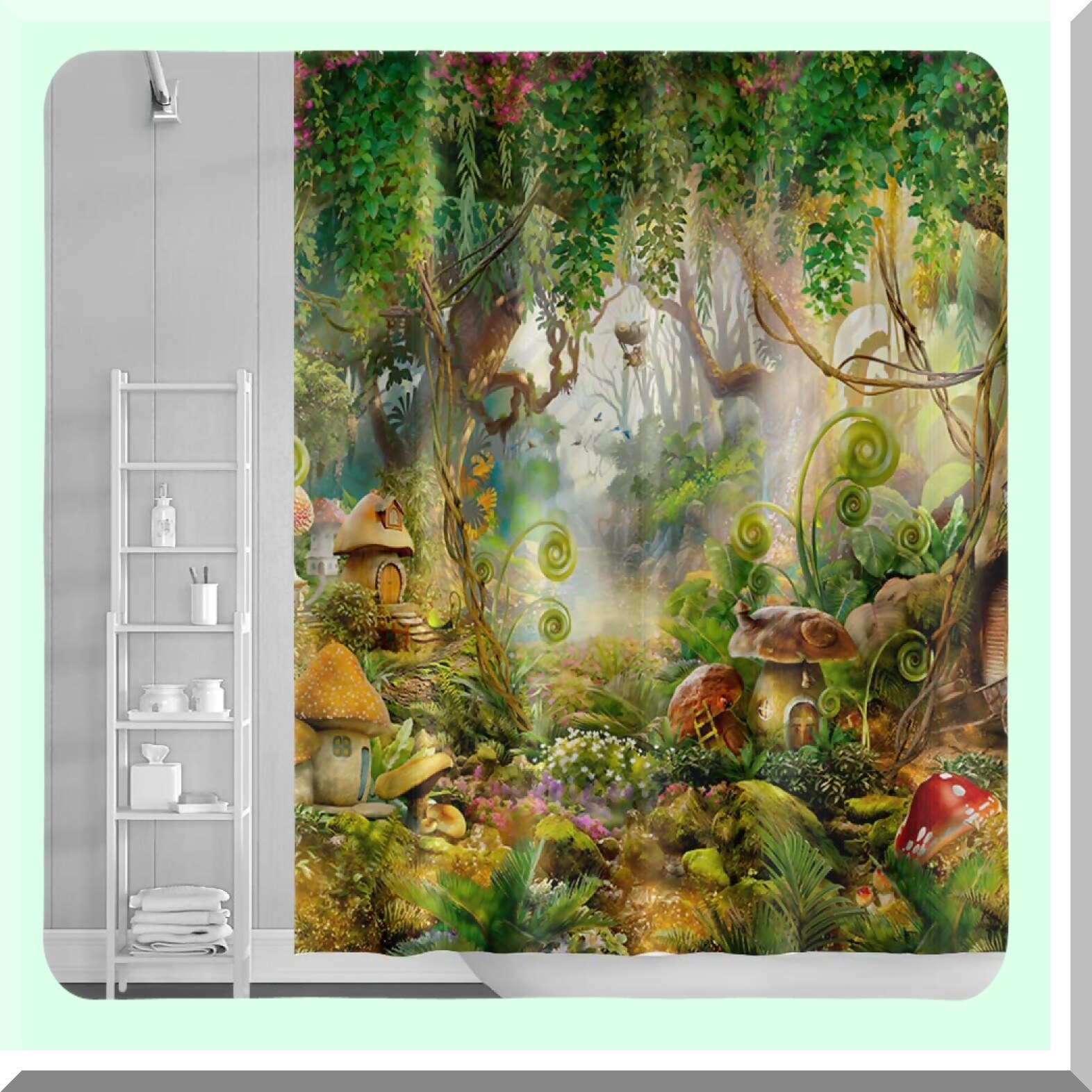 This 72x72 inch shower curtain features a vibrant woodland scene with lush trees, whimsical mushrooms, and a fairyland theme, perfect for kids and children's bathrooms. Crafted from 100% polyester fabric, it offers a soft, comfortable feel while being waterproof and durable. The high-definition 3D printing technology ensures bright, clear colors that do not fade, adding depth and visual interest to your bathroom decor. Easy to install, simply fix the hooks on the pole and hang the curtain. The curtain is machine washable and dries quickly, making maintenance simple. Its stylish design transforms your bathroom from plain to fabulous, creating an immersive and relaxing environment. Custom sizes and patterns are available, allowing you to personalize your space with your favorite themes or images. Please note that actual size may vary slightly. For questions or custom requests, contact us for excellent service.