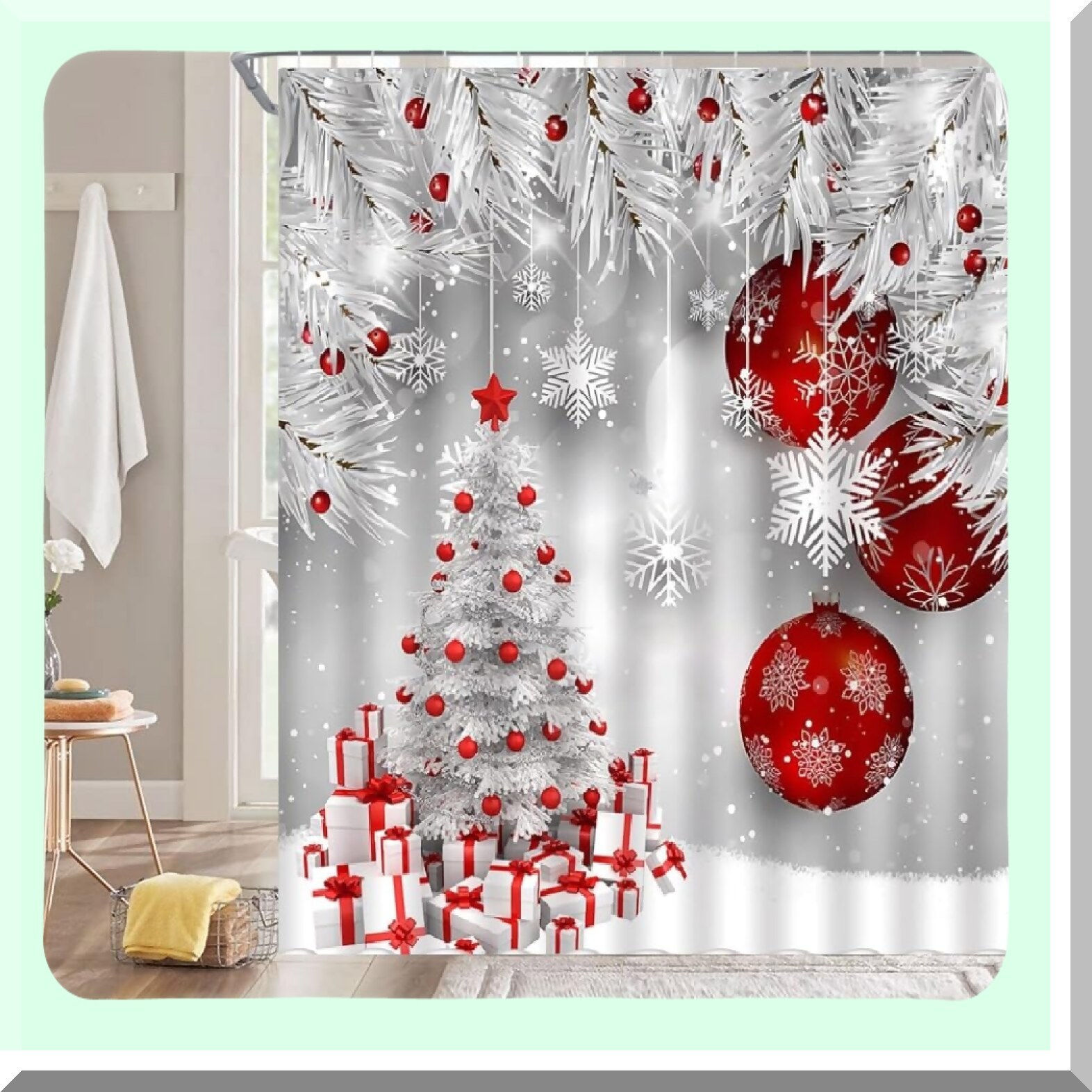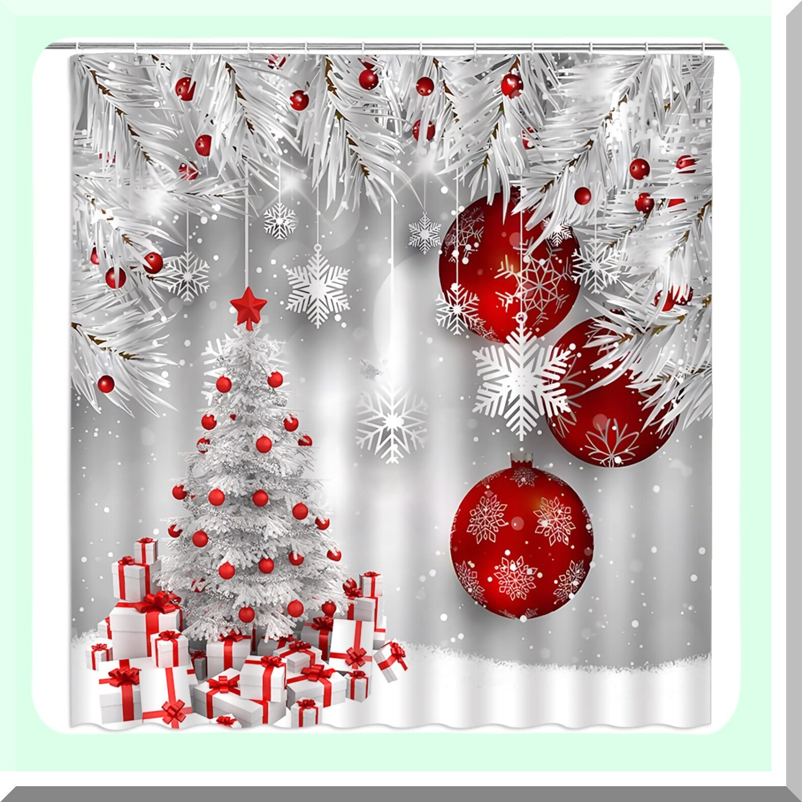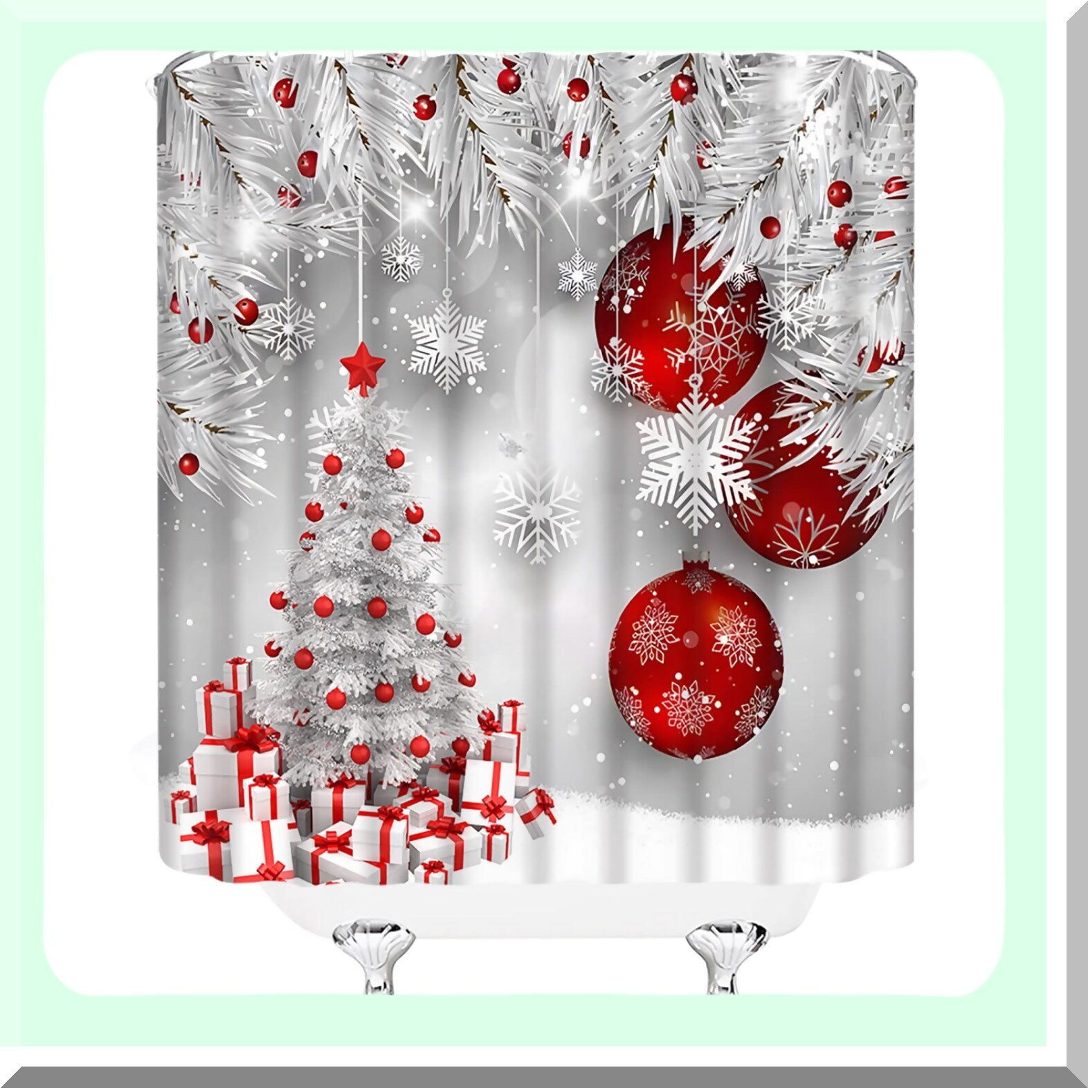 Xmas Tree Red Ball Snowflake Shower Curtain and 50 similar items