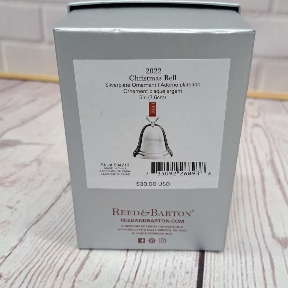 New 2022 Reed and Barton Silver-Plate Dated Christmas Bell Ornament #894219