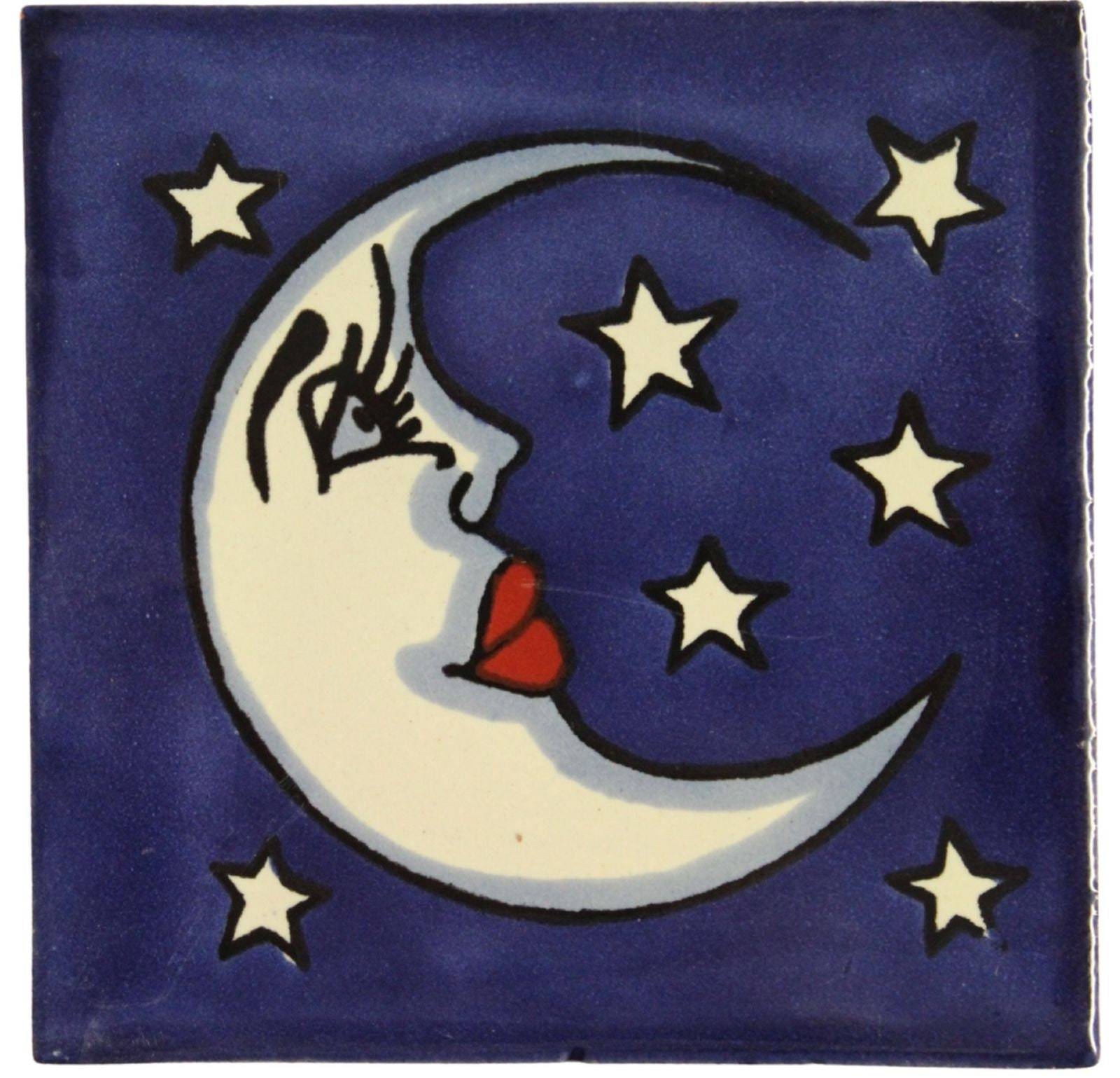 POOL TILES Mexican Talavera Ceramic Frost Proof Handcrafted Tiles - Moon2 - (yo