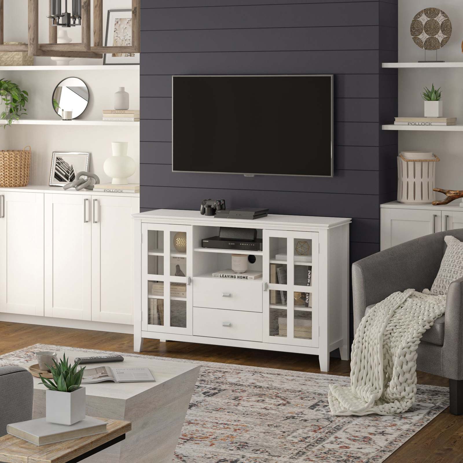 Wide and tall TV Stand is perfect for TVs up to 60 inches includes cord management cut-outs for easy installation of TV and media components