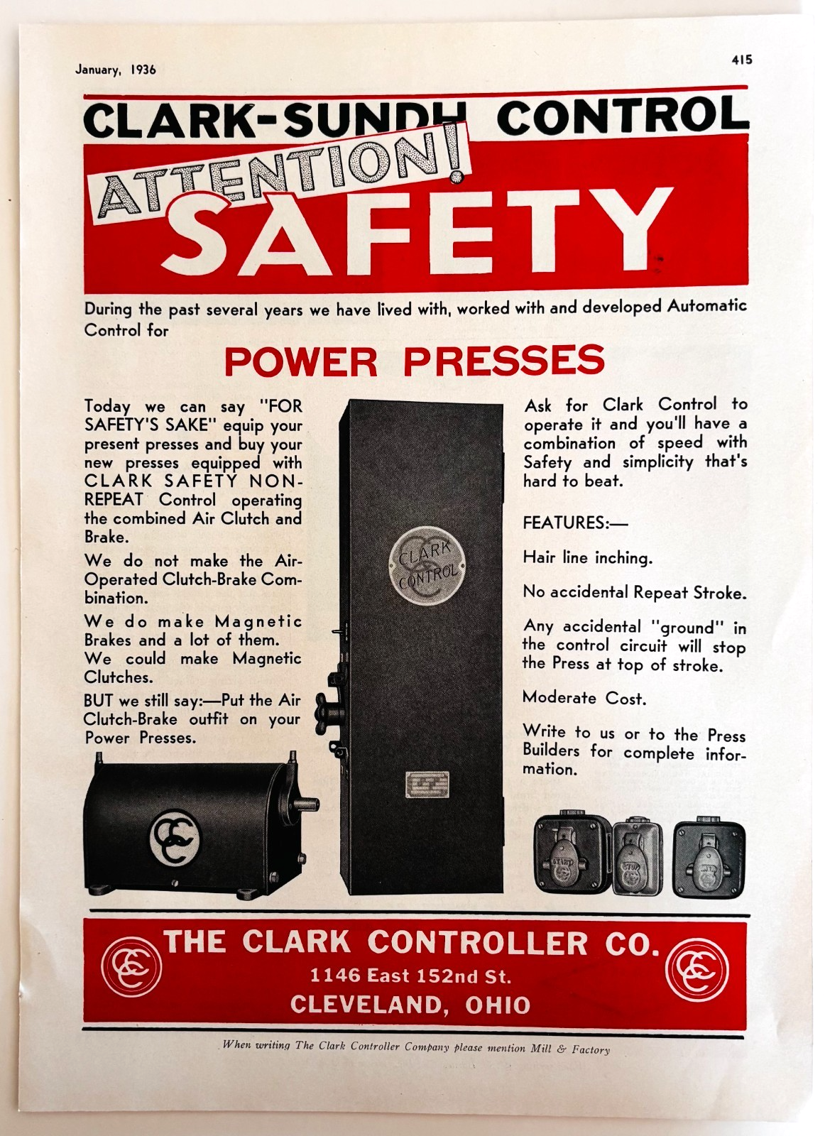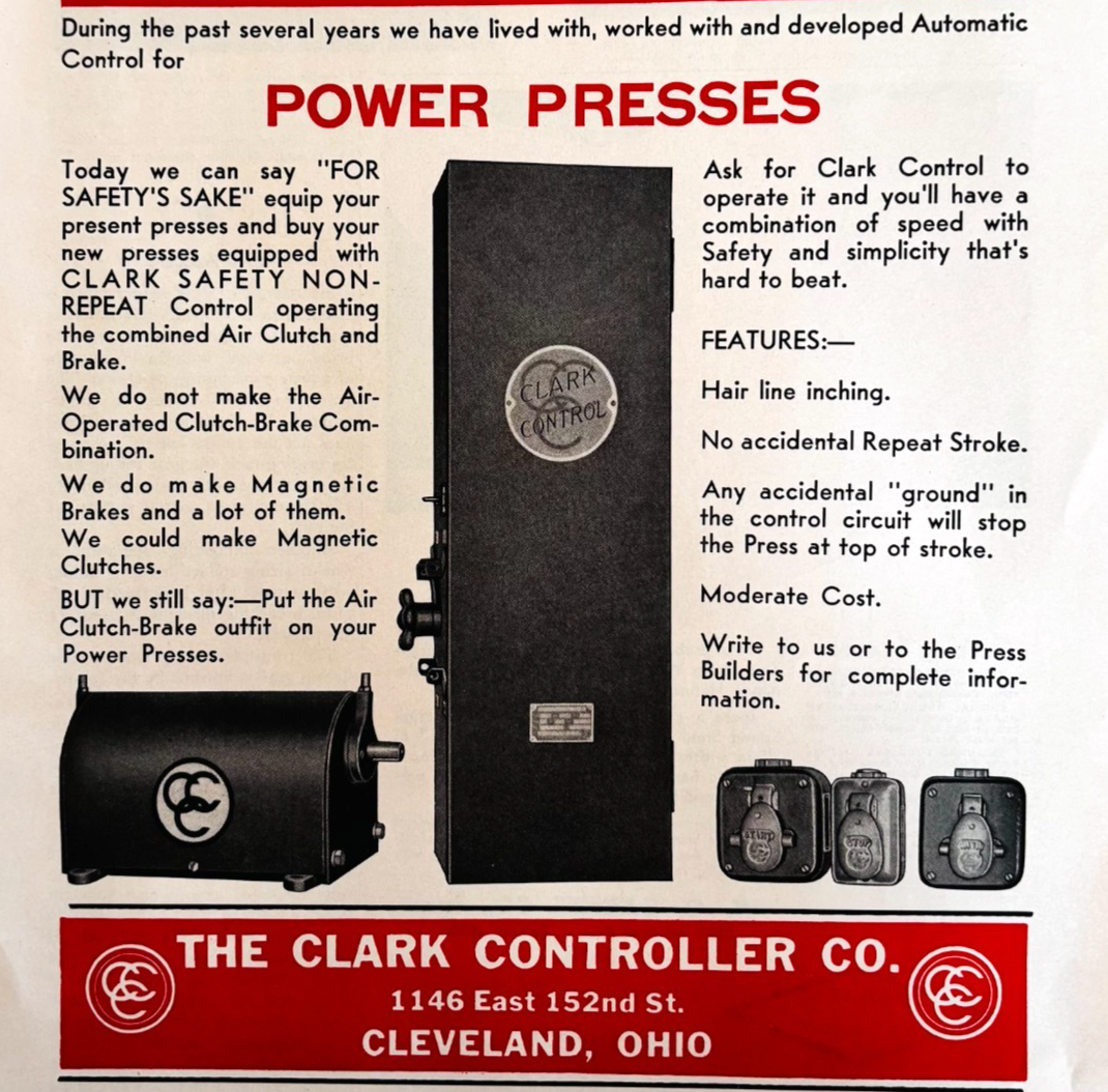 1936 Clark Controller Co Advertisement Industrial Power Press Controls F15C