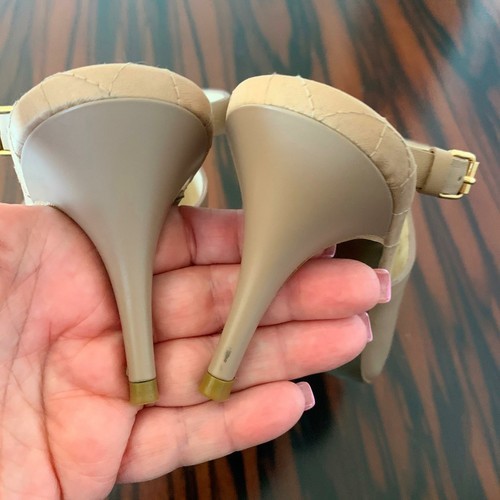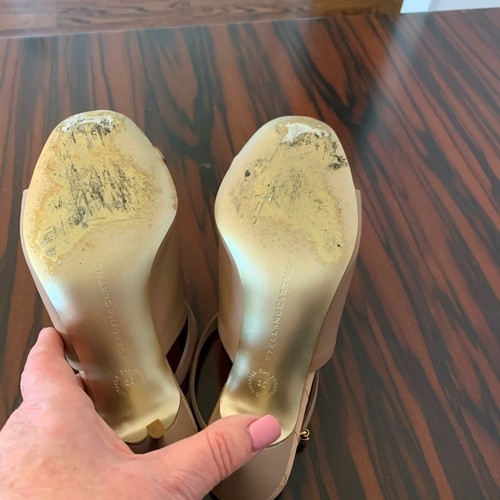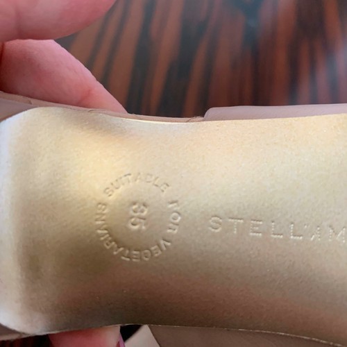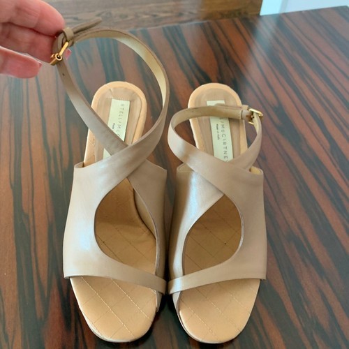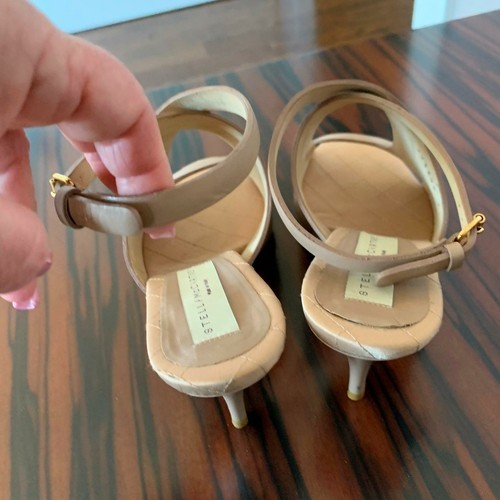 STELLA MCCARTNEY Vegan Leather Beige Open Toe Small Heel Sandal SZ 35/US 5 EUC