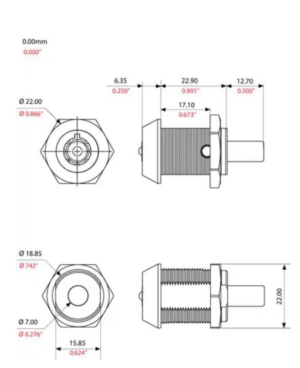 Qty-2 CAMLOCK Series 25 Brass Octagon Push Knob Button Plunger Lock Keyed Alike