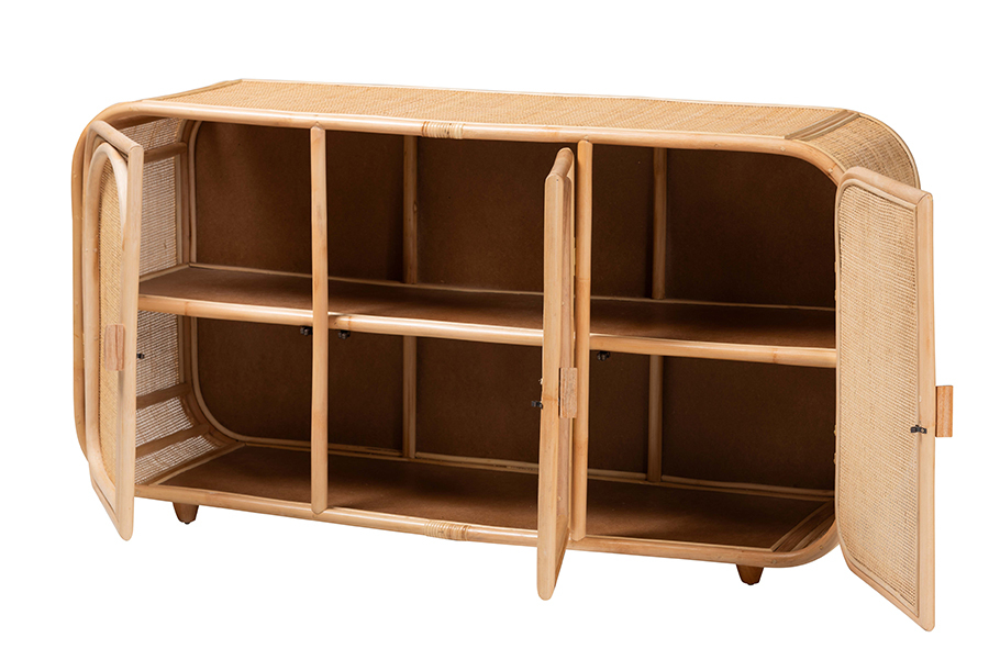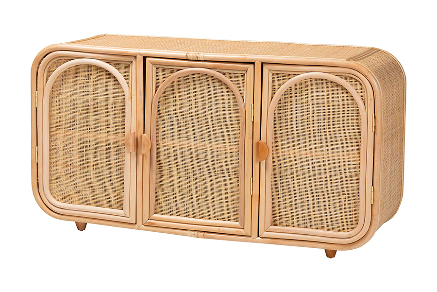 Darla Bohemian Natural Rattan 3-Door Storage Cabinet