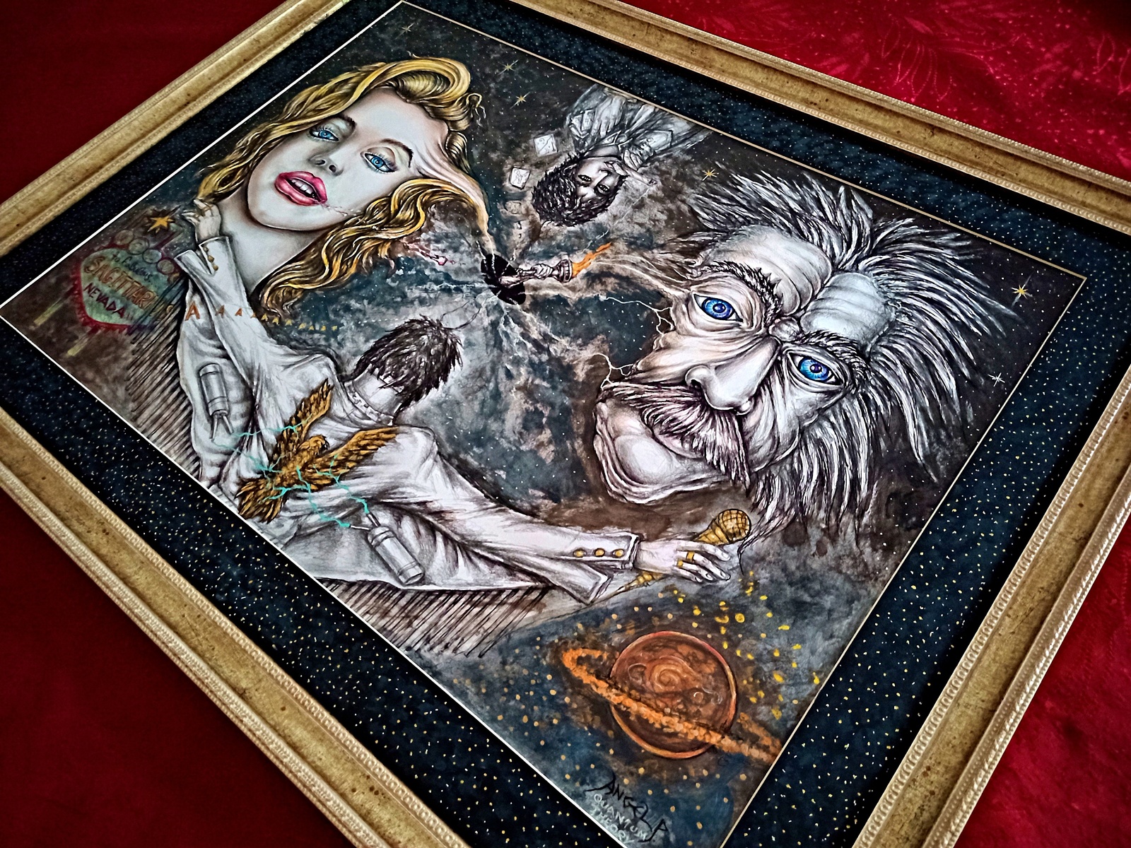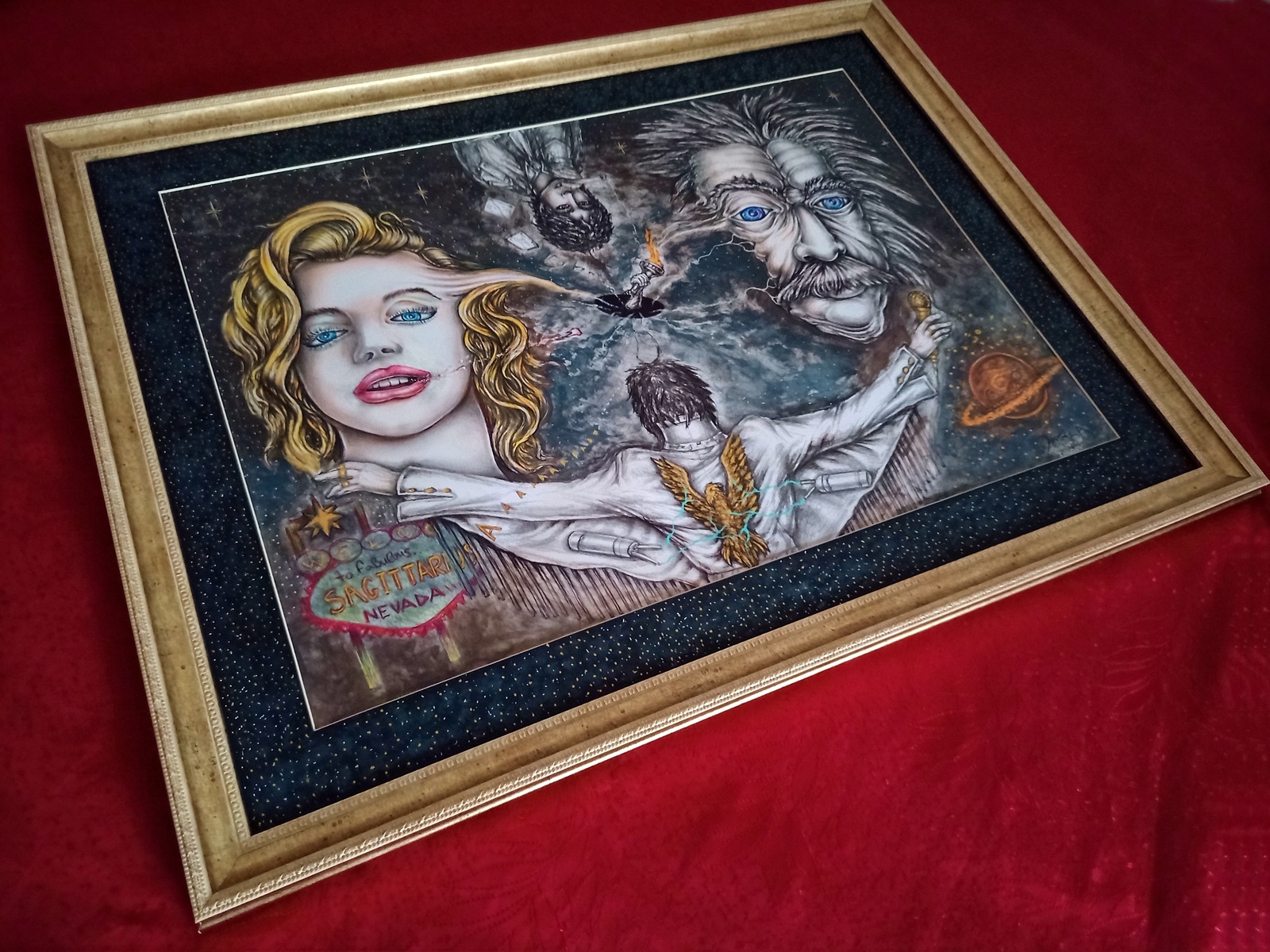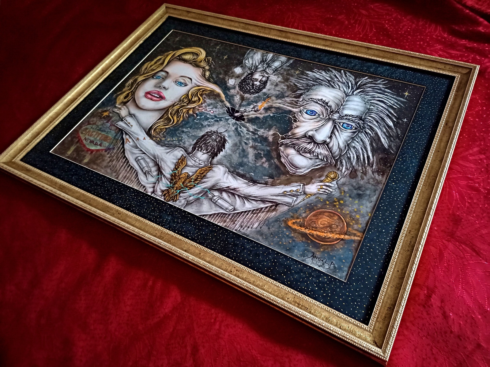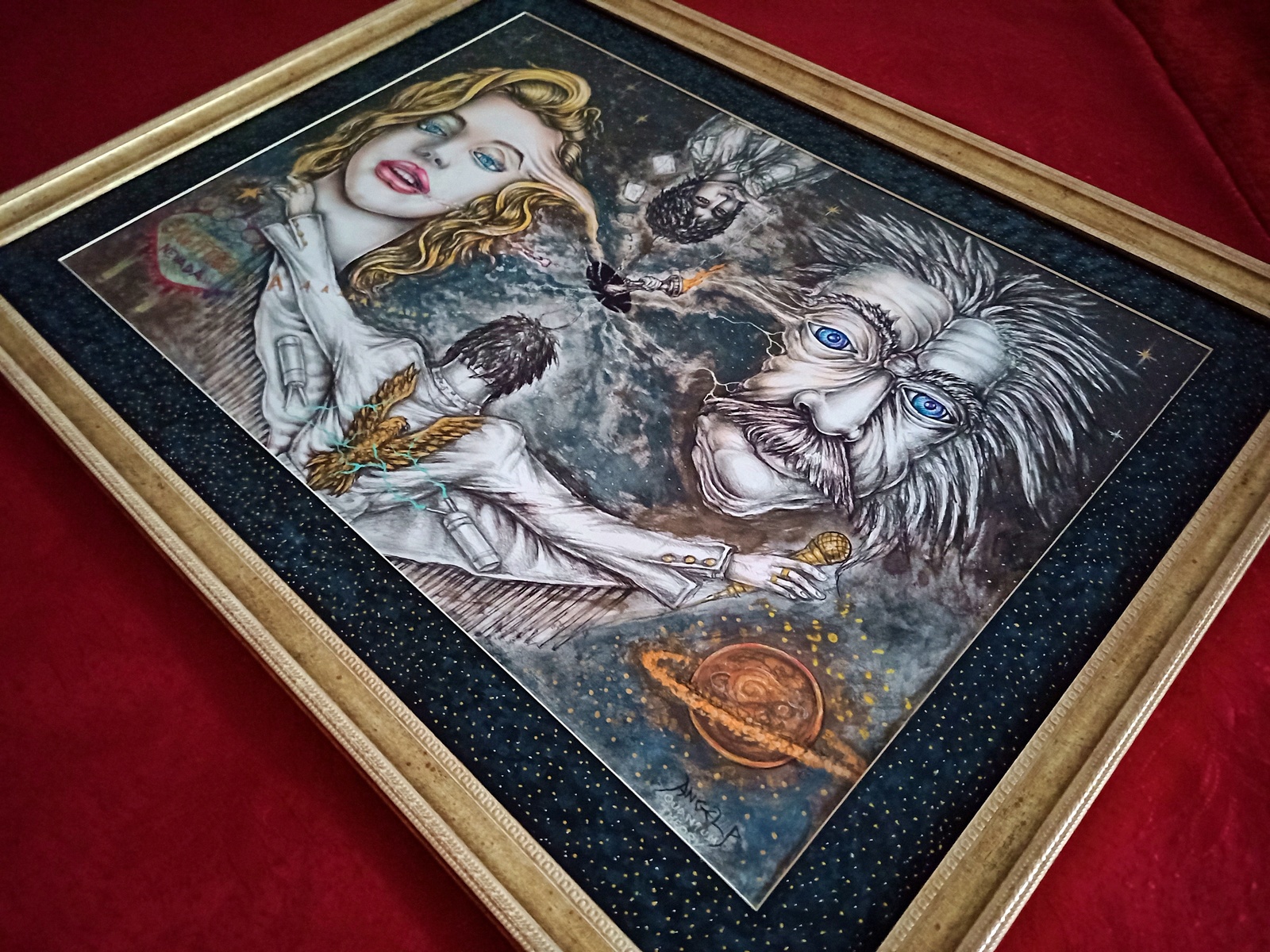 *** FANTASTIC / CULT / AMAZING / ASTONISHING - UNIQUE IN WORLD EVER + Special METALIC GOLD colors used on the Painting + GLAMOROUS VALUABLE FRAME ($320).