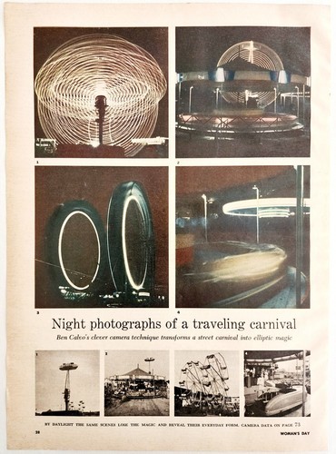 1949 Night Photographs Of Traveling Carnival Magazine Page Woman's Day DWNad1