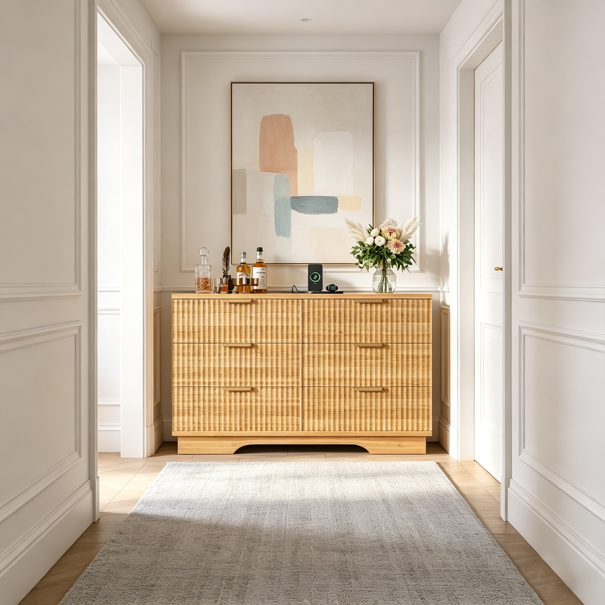 47" Wide Fluted Wooden Storage Chest with Charging Station & Anti-Tip Device