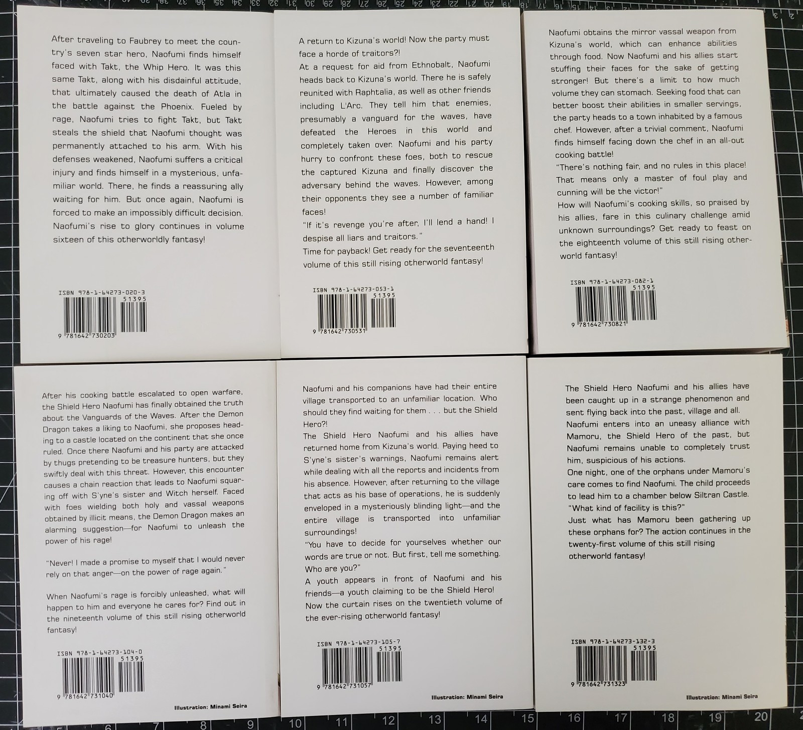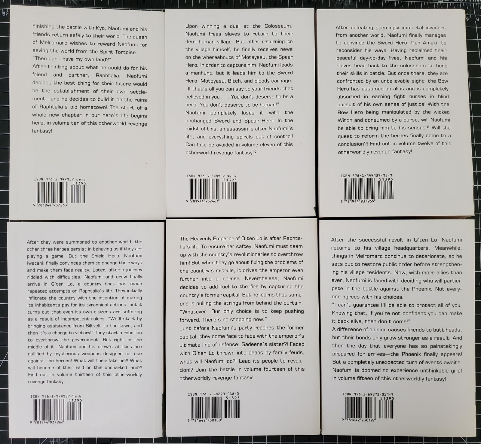I am selling volumes 10-21 of Rising of the Shield Hero. These are the Light Novels as released in English by One Peace books.