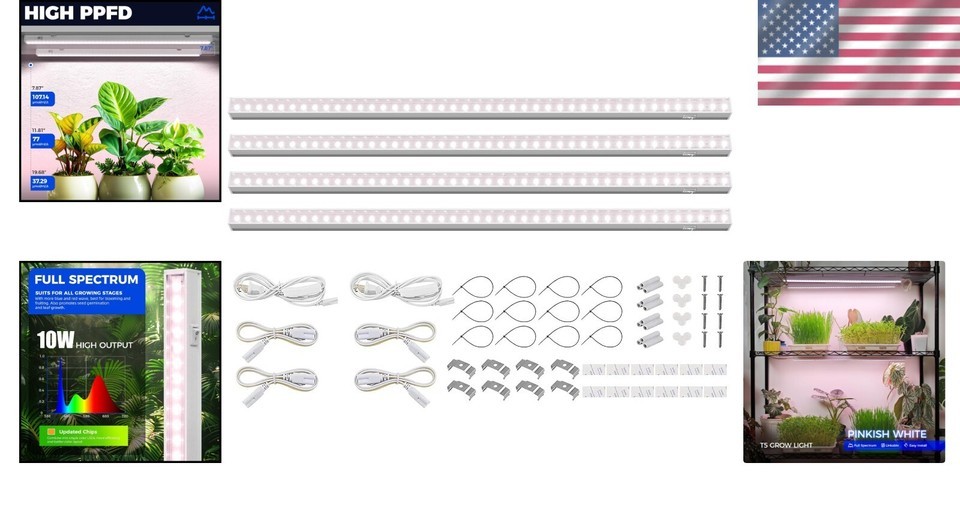 Compact 2ft LED Grow Lights - Full Spectrum Plant Growth, Pinkish White Finish