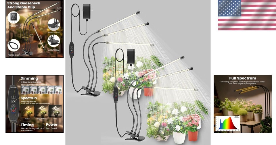 LED Grow Light for Indoor Plants - Dimmable & Timer Function - 2 Pack
