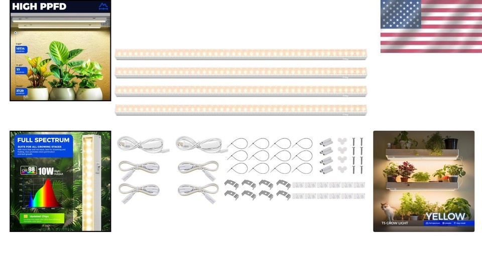 Highly Efficient Yellow LED Grow Lights, 40W 4-Pack - Ideal for Plant Growth