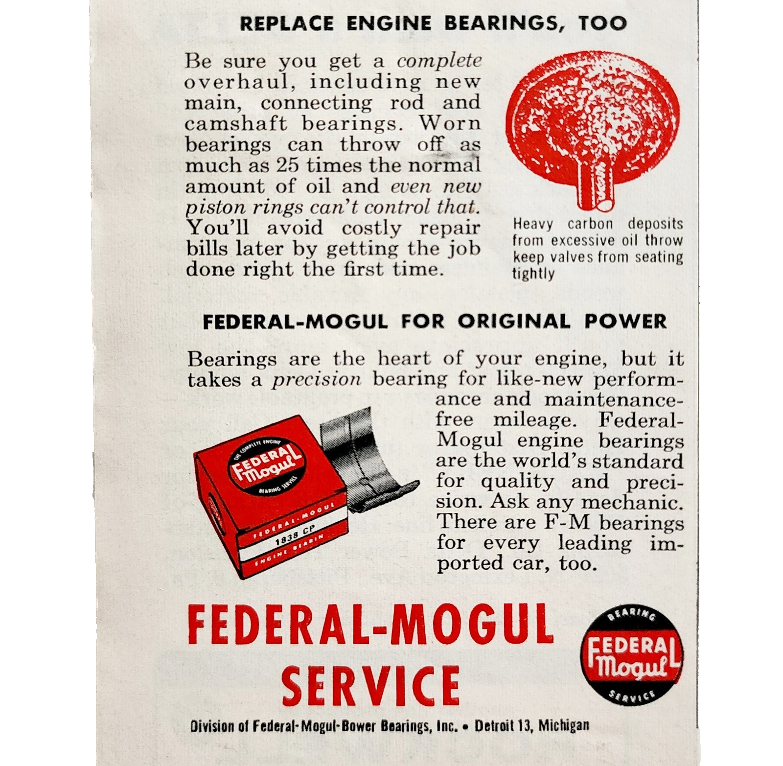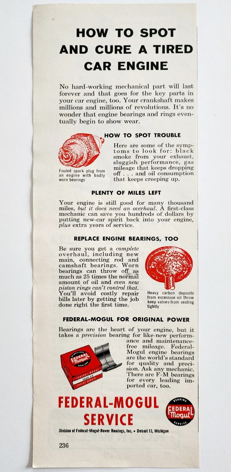 1960 Federal Mogul Service Bearings Advertisement Automobilia Vintage DWF26