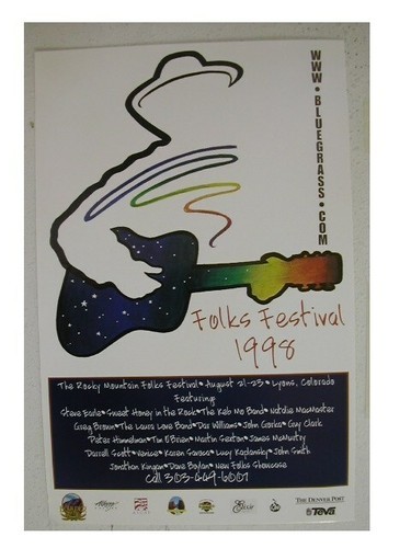 Cette affiche de concert est pour un concert du Folks Festival a Lyons Colorado. Le prospectus mesure 11 pouces sur 17 pouces. Il est en parfait etat.