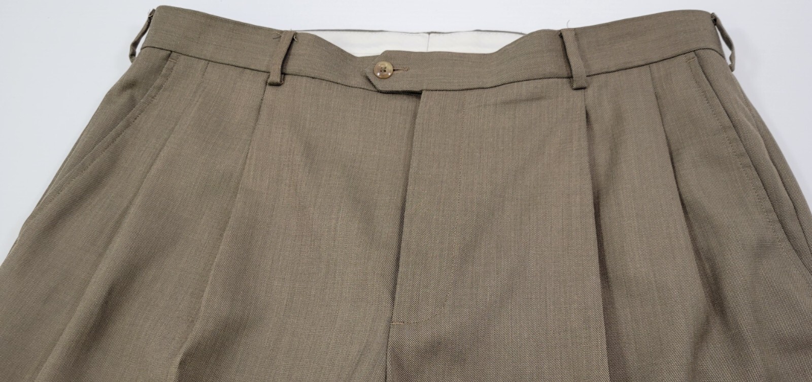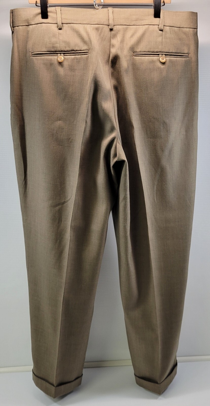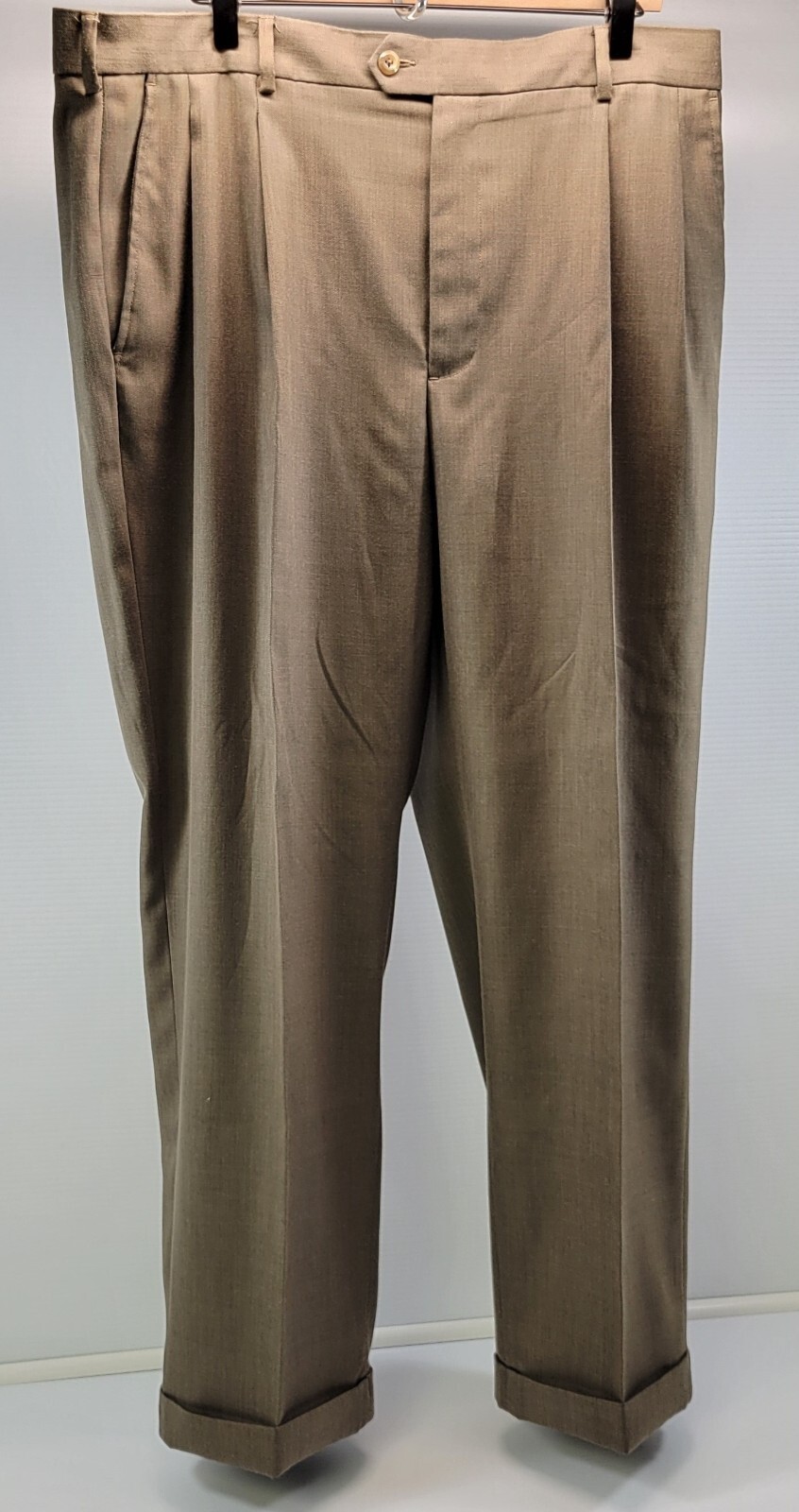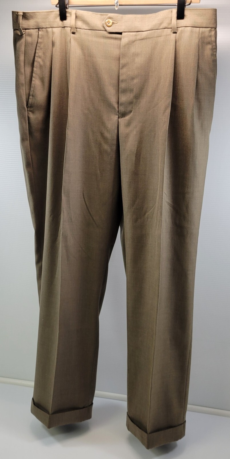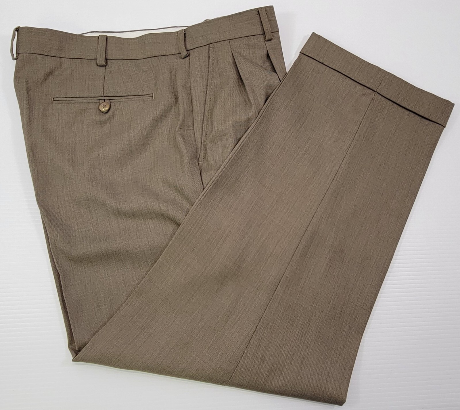 MA) Stafford Essentials Men Brown Pleated Cuffed 38x30 Classic Fit Dress Pants