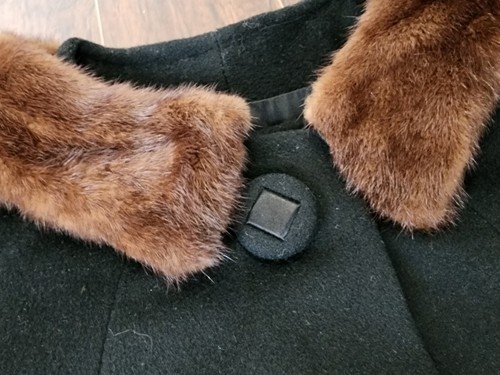 Vintage MOD 50-60s Black Wool Swing Coat Mink Collar