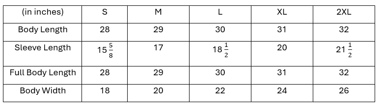 sizing, feel free to request other measurements!