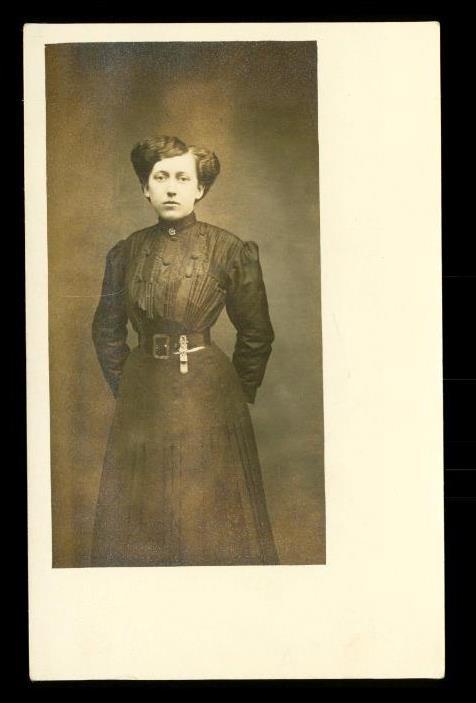 Vintage RPPC Real Photo Postcard Lady Edwardian Mourning Dress Fancy Belt Fob. No smoke or pet odor.