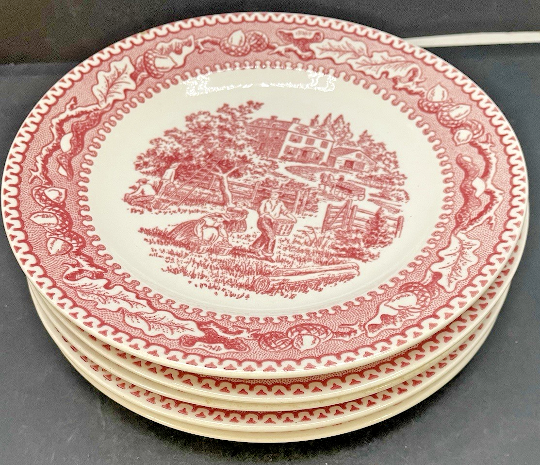 Royal Ironstone Memory Lane 1965 Vintage 6" Red Bread Plates Set of 5