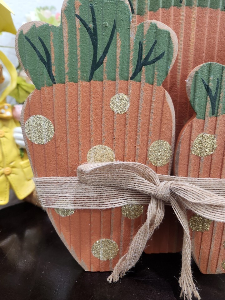 Easter Spring Rabbit Carrots Gold Glitter Polka Dots Tabletop Wood Sign Decor