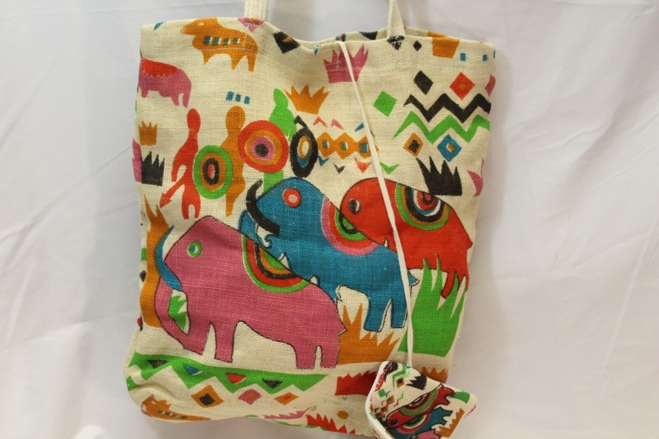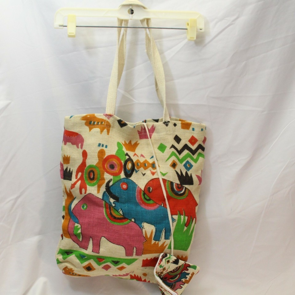 Indian Elephant Tote Should Bag With Purse 15" W x 17" D 10" Handle Drop