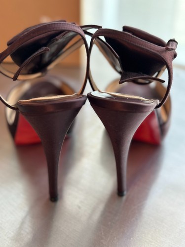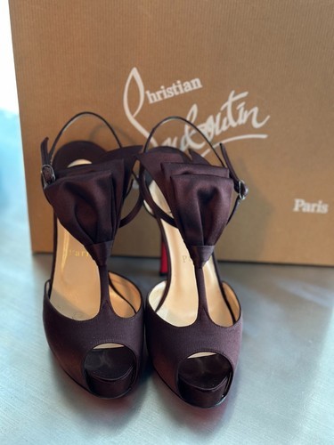 CHRISTIAN LOUBOUTIN "Ernesta Bow" Brown Satin Platform Sandals SZ IT 36/US 6.5