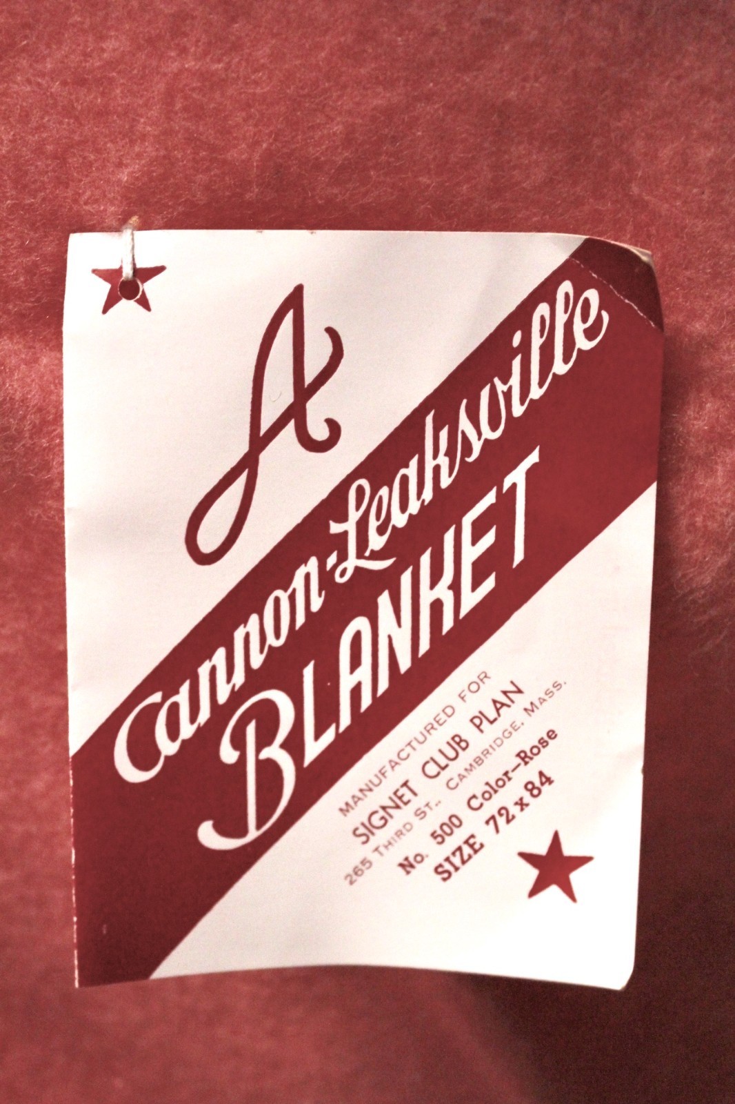 Gorgeous Vintage Cannon Leaksville Cordova blanket rose pink with cream colored stripes brand new with tags. 1950s. Super lightweight for the sixe, but thick and cosy.