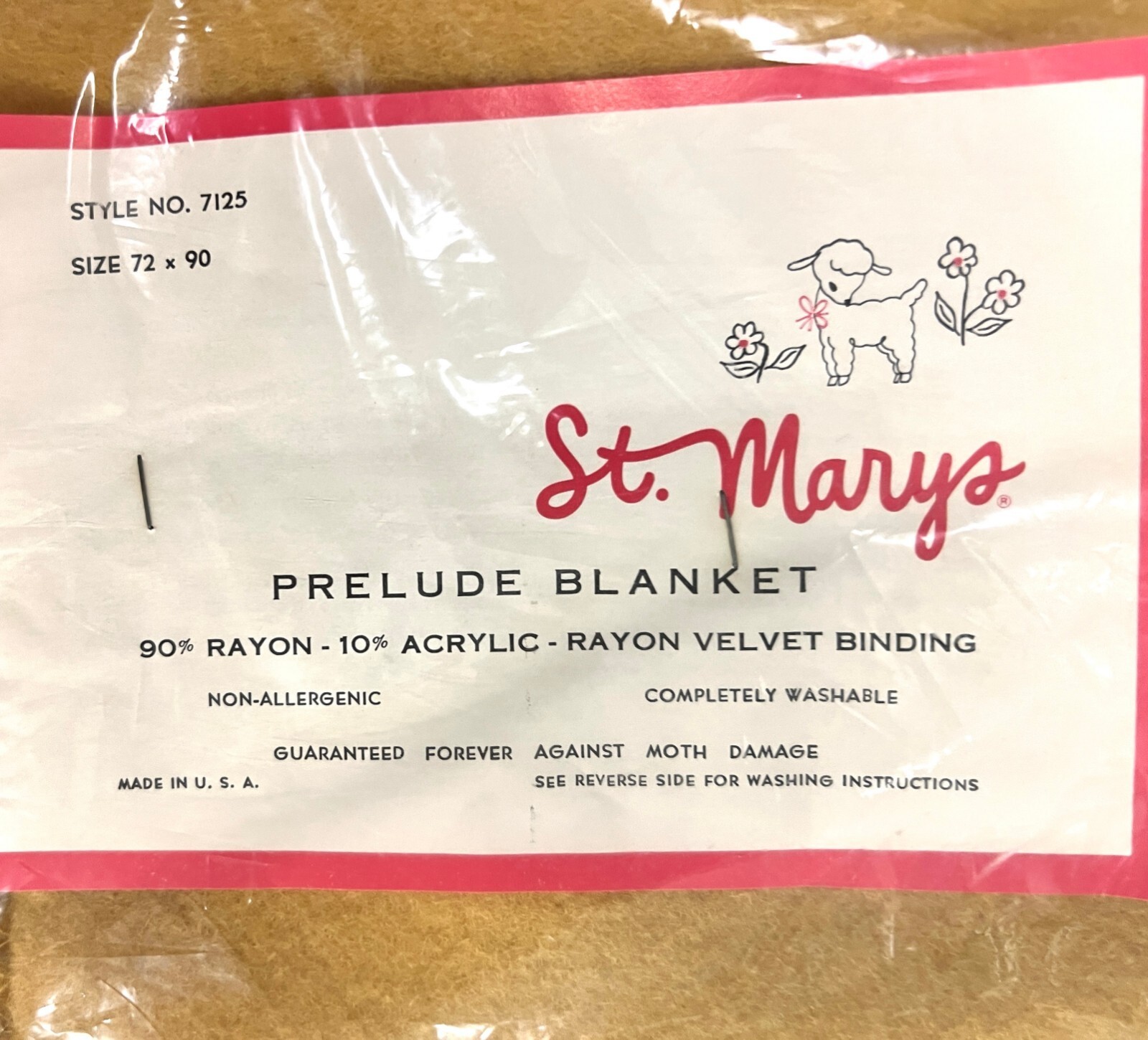 Vintage St Mary's Gold/Yellow Rayon Acrylic Blanket 72 X 90 NEW in Bag