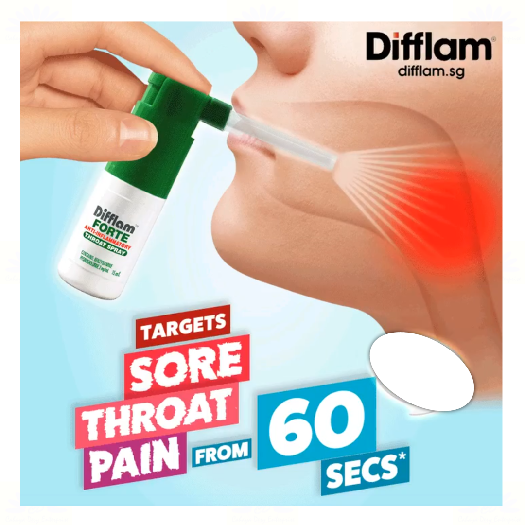 1 X Difflam Forte 15ml Anti-inflammatary Plaie Gorge Bouche Ulcères Spray