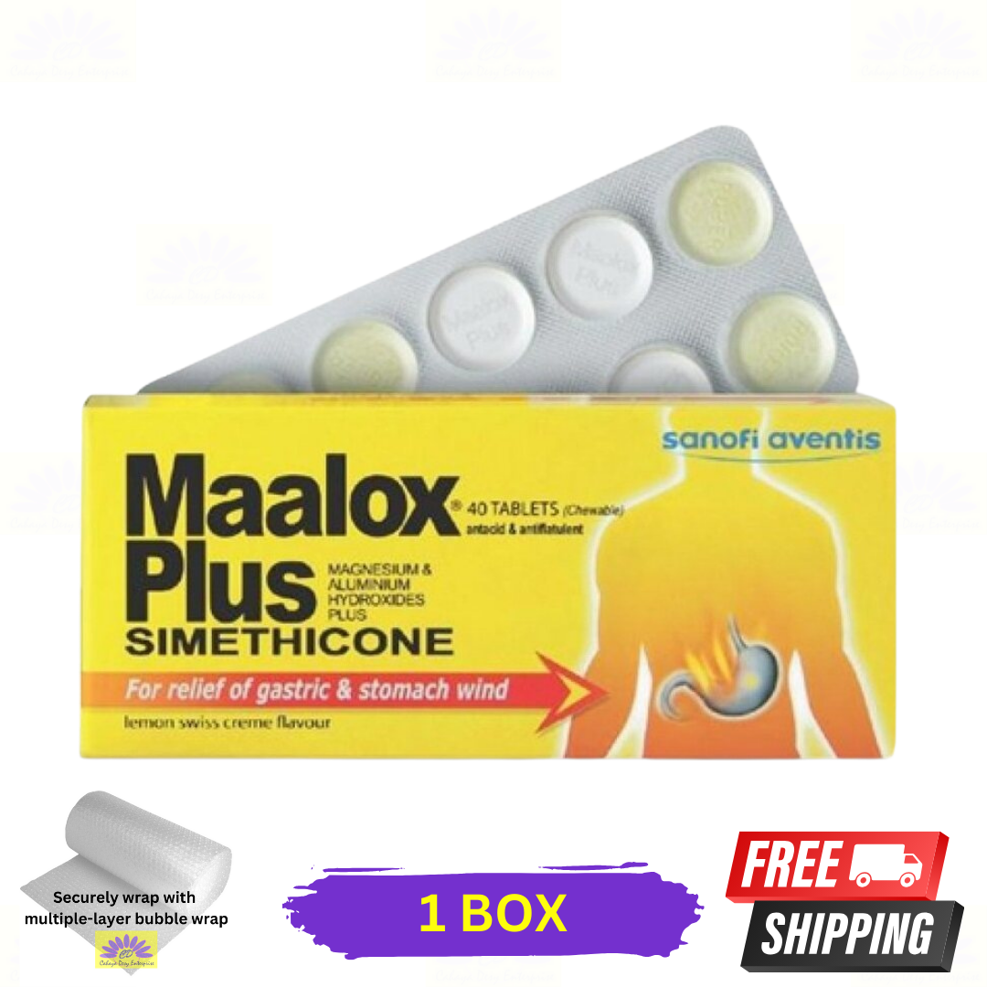 Maalox Plus Tablet vous donne un soulagement rapide et efficace des brûlures d'estomac, avec une activite durable. Maalox Plus aide egalement a soulager les flatulences et l'eolien provoques par l'exces de gaz. En effet, il contient de la simethicone, un ingredient supplementaire qui n'est pas dans le maalox «standard». Maalox plus soulage les brûlures d'estomac (indigestion acide) en neutralisant l'acide en exces dans l'?sophage (pipe alimentaire) et l'estomac. Vous devriez commencer a ressentir un soulagement des brûlures d'estomac tres rapidement. Notre representant du service client fonctionne 24/7. Votre satisfaction est de la plus haute importance pour nous. N'hesitez pas a nous envoyer par e-mail avec des questions ou des preoccupations et nous vous repondrions personnellement. Veui