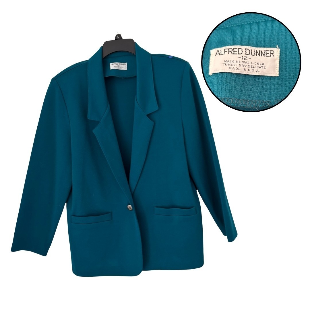 Alfred Dunner Women’s 12 Teal Blue Long Sleeve Blazer Professional Jacket