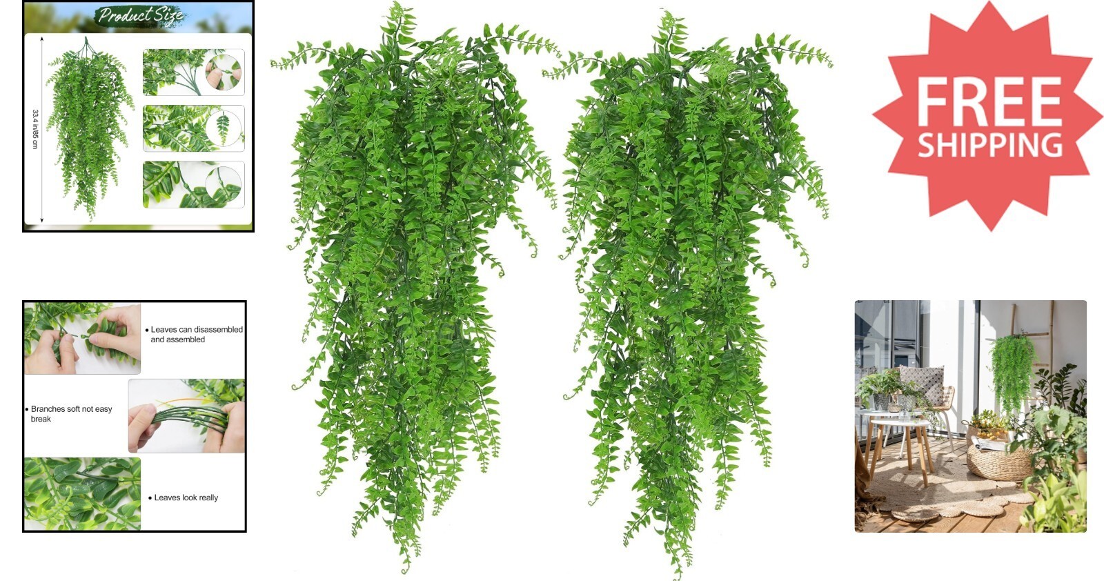 High-Quality Artificial Fern Vines - 2 Pack Hanging Plants for Indoor & Outdoor