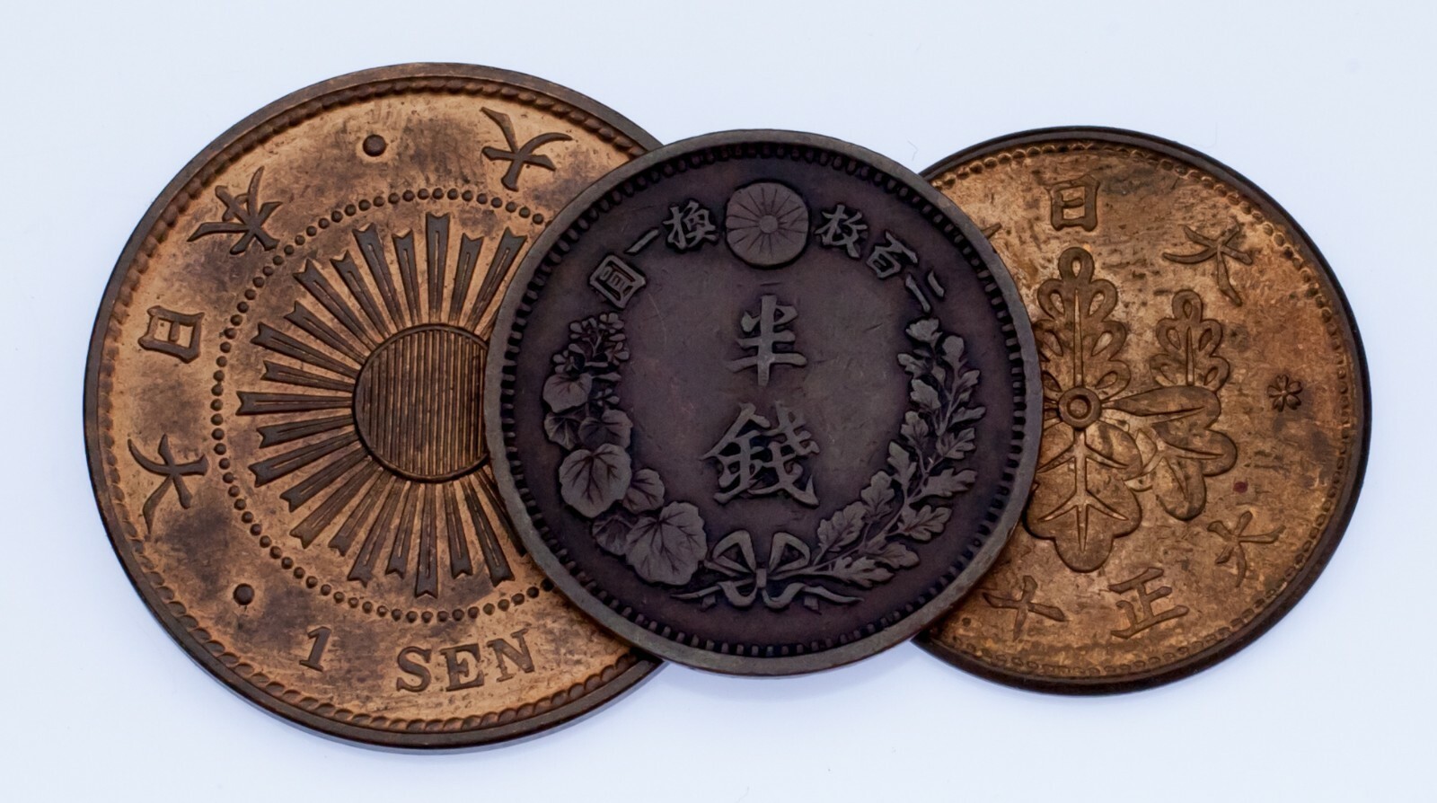 Plein De 3 Japonais Bronze & Cuivre Pièces VF + À Bu État