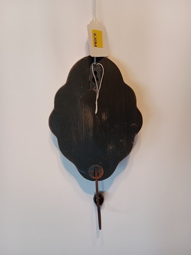 This decorative wall hook/hanger features a traditional design with a shabby chic style, perfect for adding a touch of rustic charm to any room. Made of wood, metal, and mixed materials, the large-sized hook is wall-mounted and has a brownish color with a matte finish. The folk art home decor piece has a single hook, making it easy to install and ideal for hanging coats, bags, or other items. Overall, this item exudes a quaint and vintage aesthetic, adding a unique and stylish element to your home. Pre-owned, normal wear.