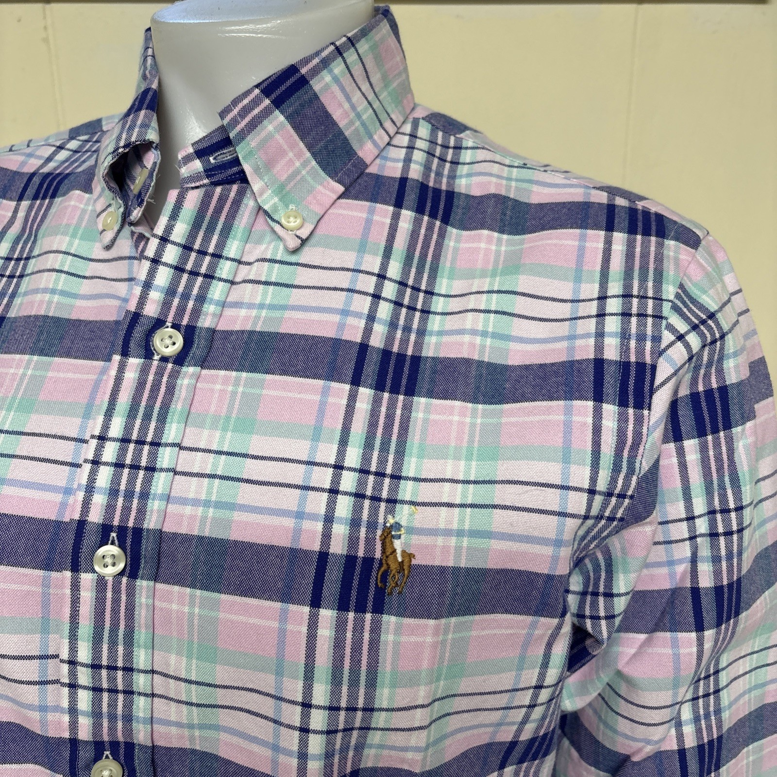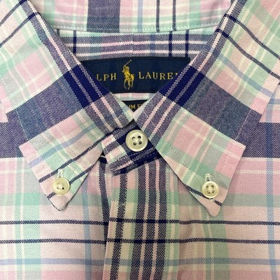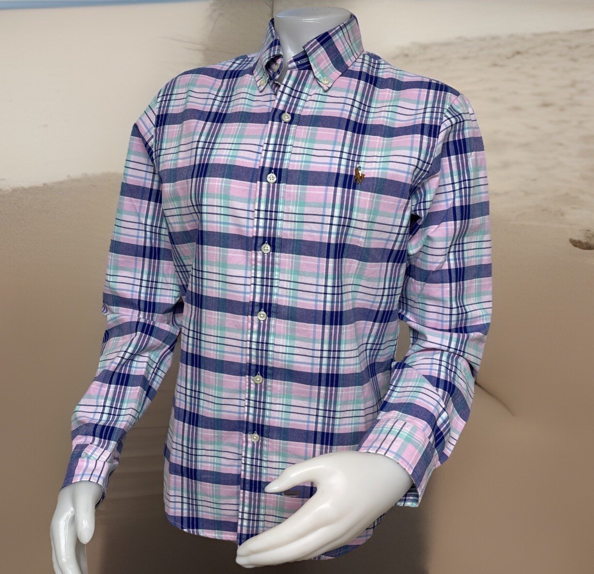 Ralph Lauren Plaid Shirt Mens Sz S Slim Pink Green Blue Long Sleeve Button Down