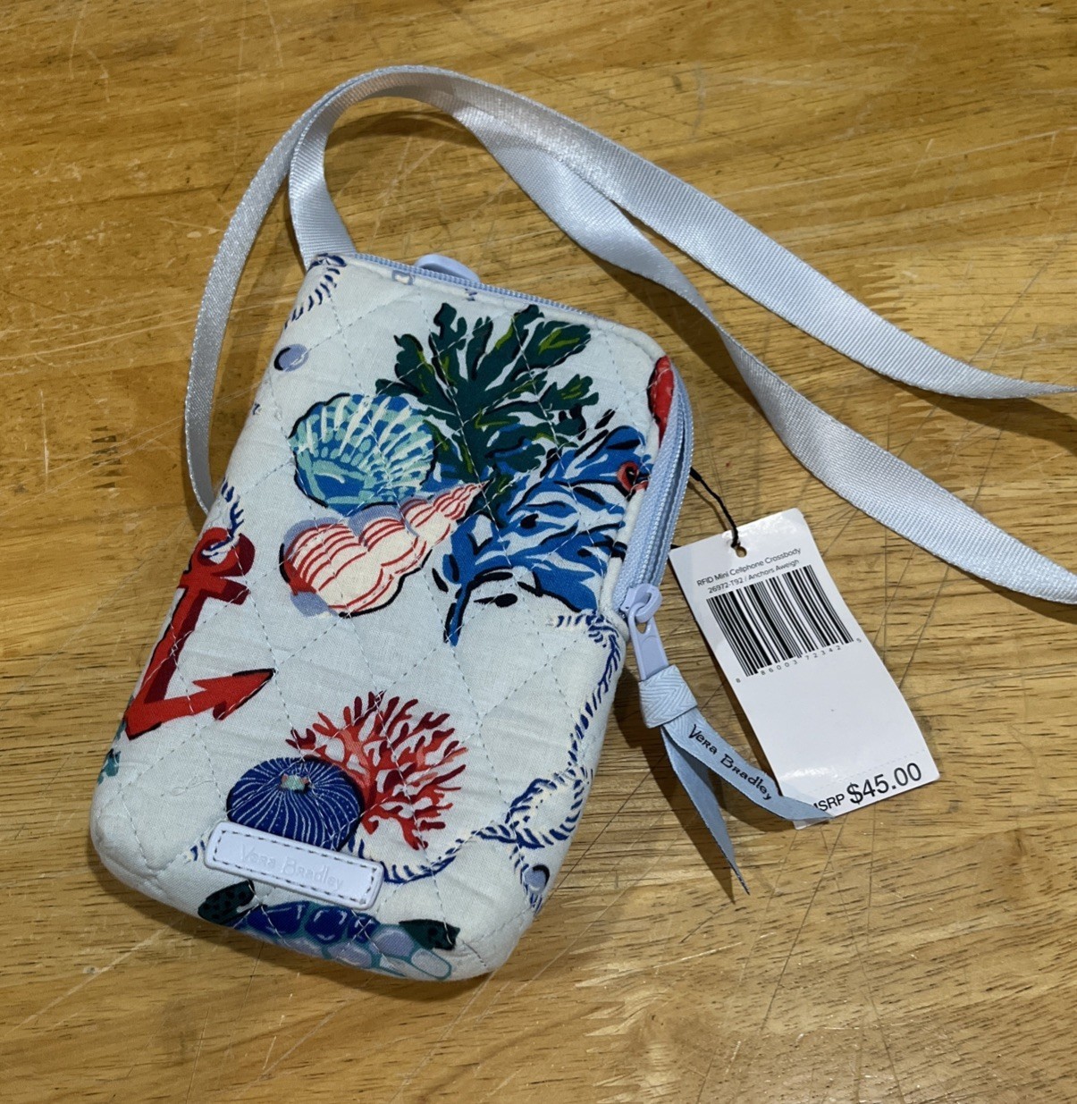Vera Bradley Anchors Aweigh Lighten Up RFID Mini Cellphone Crossbody Blue