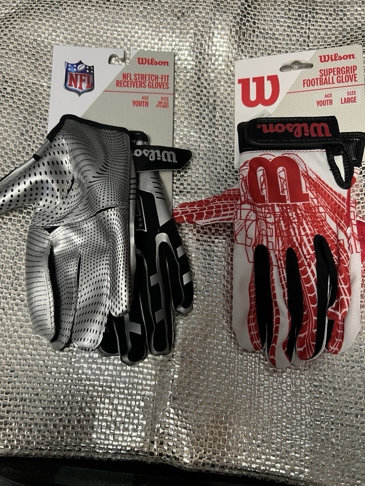Wilson Football Receiver Gloves Kids Boys Youth Large Red White Adjustable Wrist