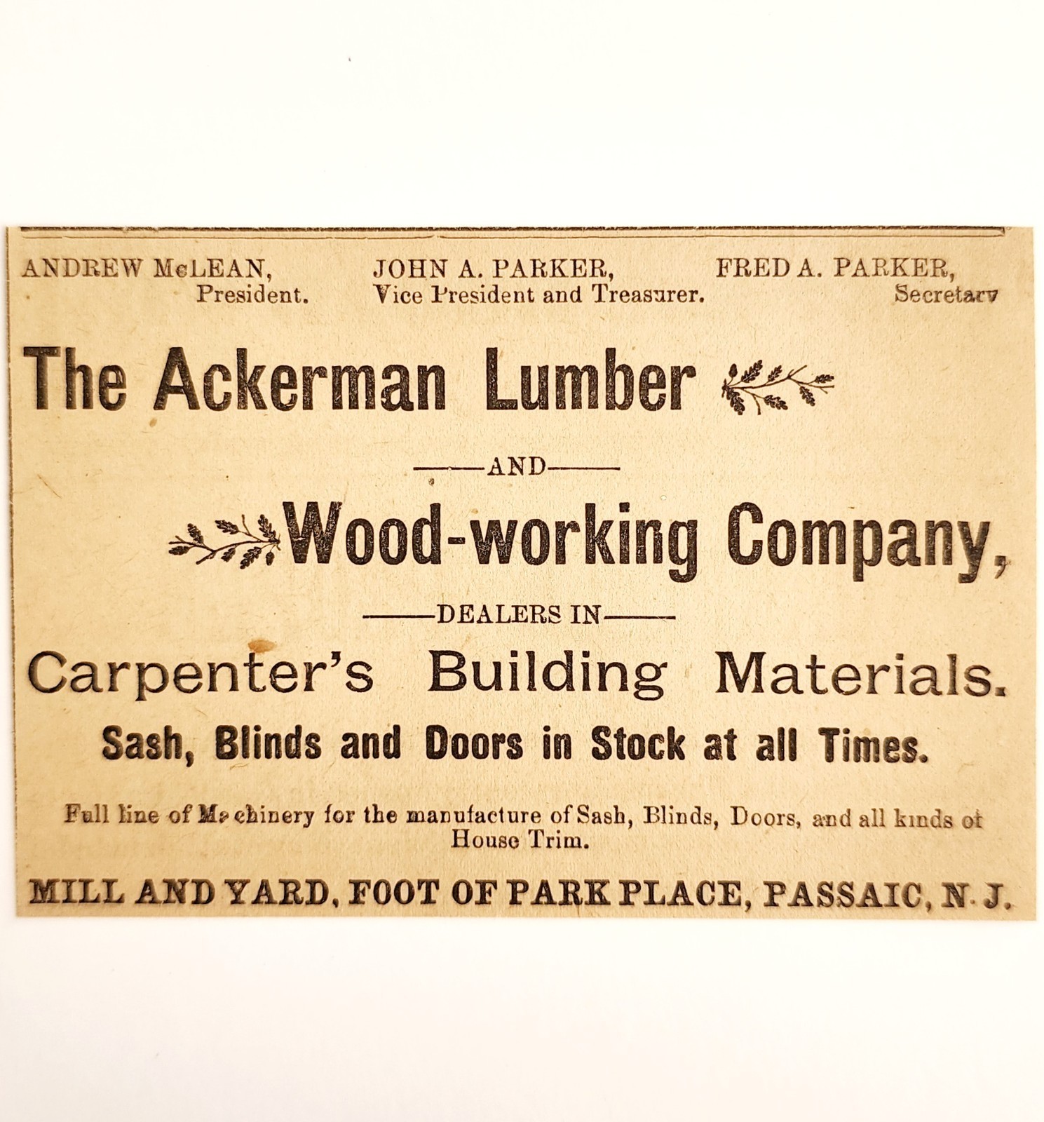 1895 Ackerman Lumber Mill Victorian Advertisement Passaic New Jersey 3 F13L
