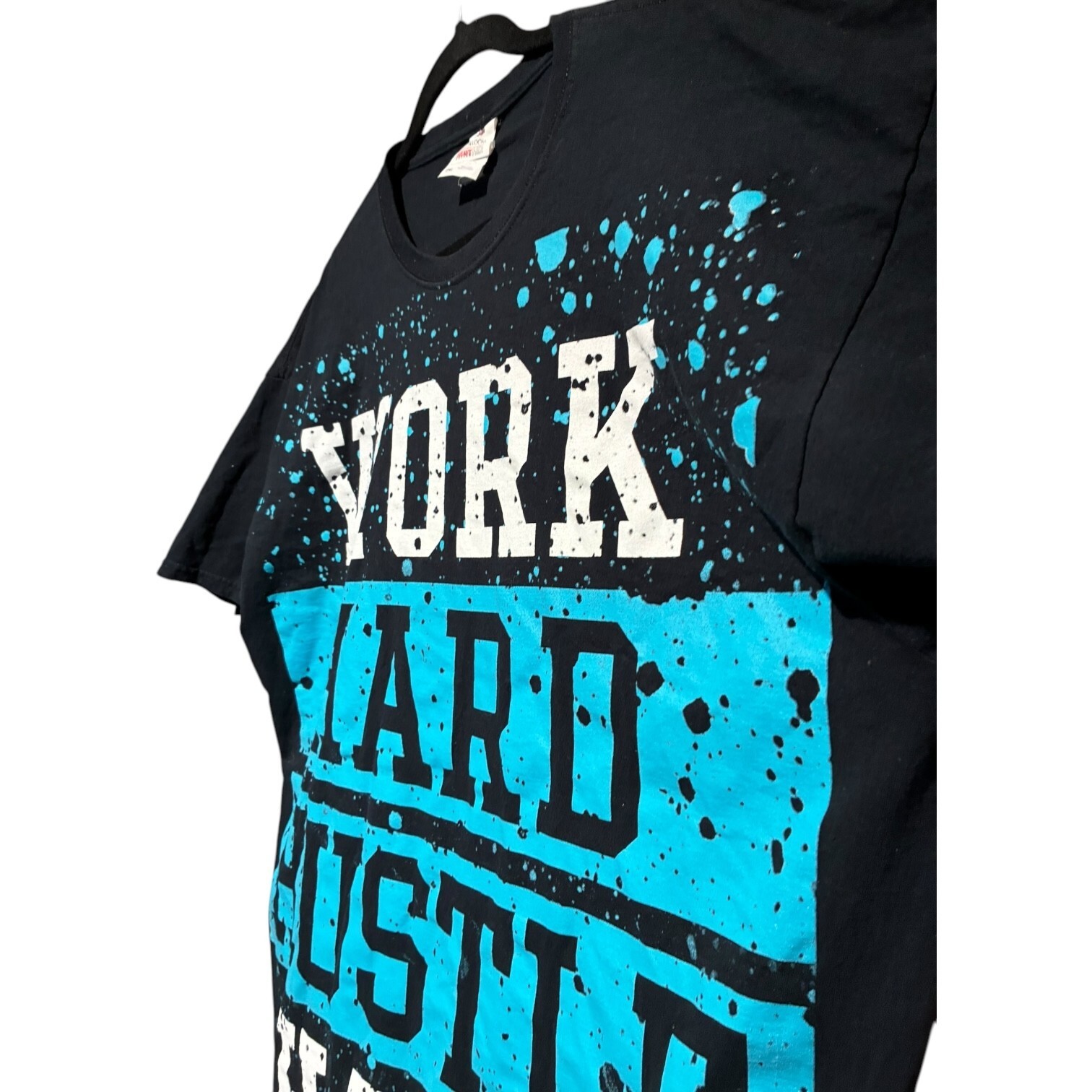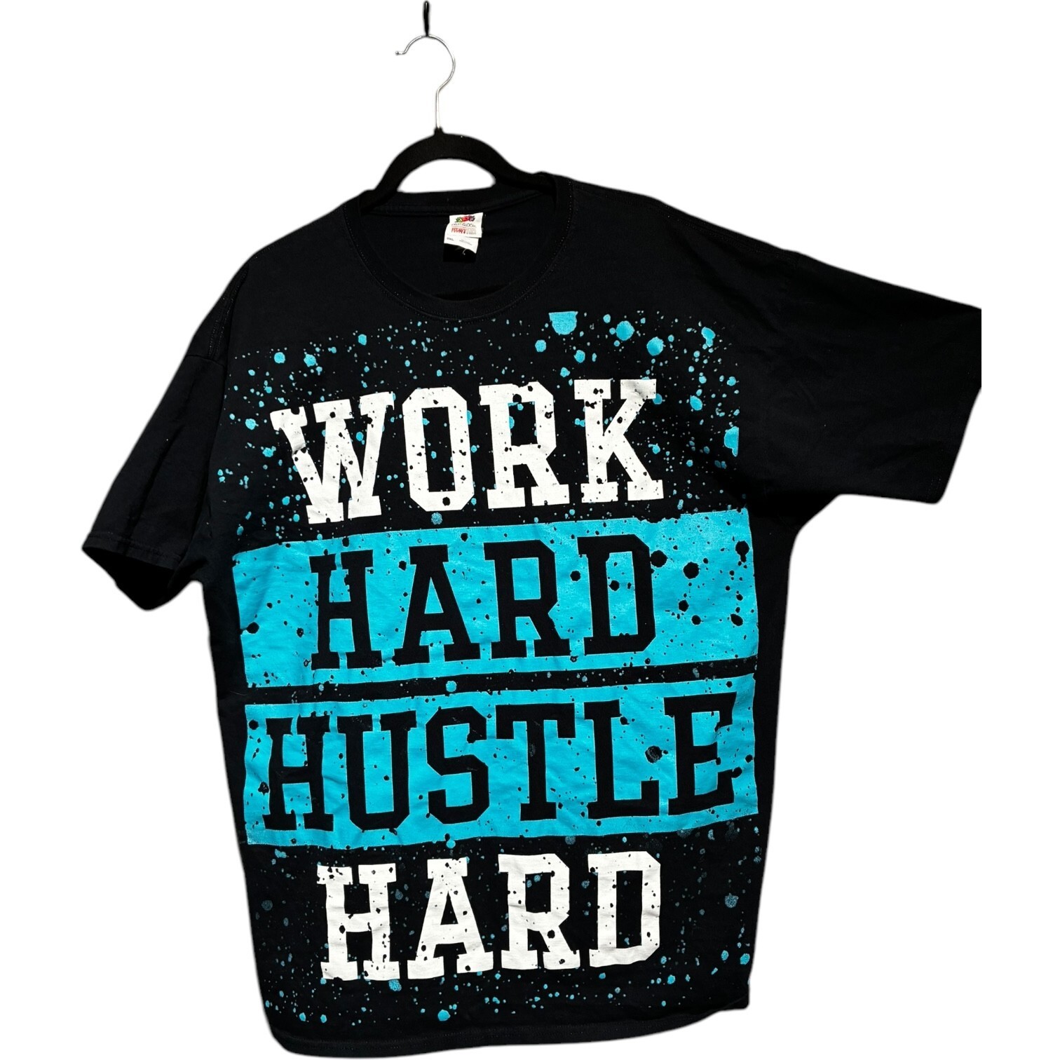 work hard hustle hard' navy blue fruit of the loom tee shirt men's size 2XL
