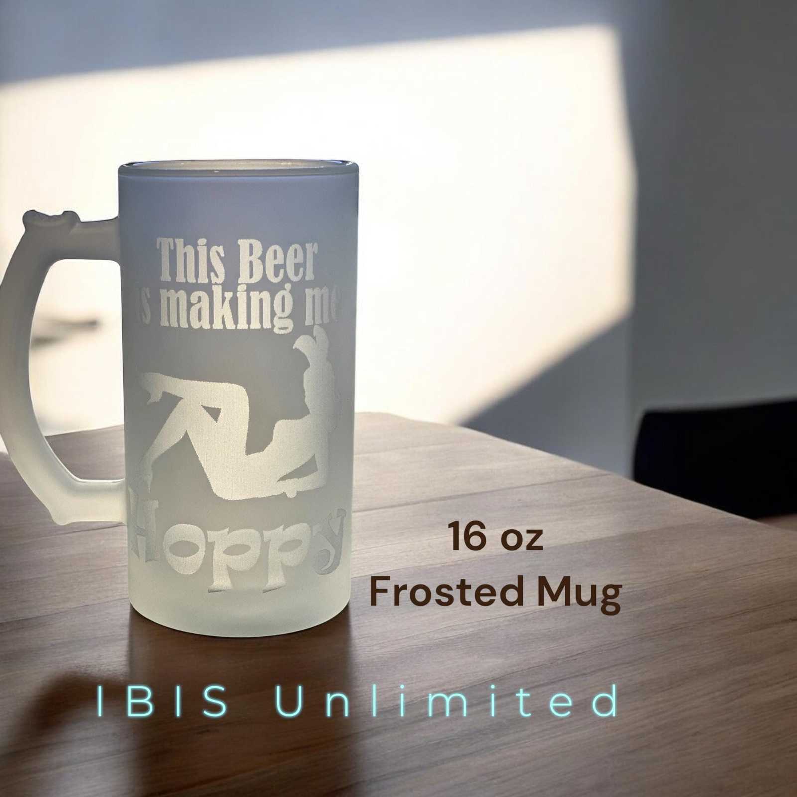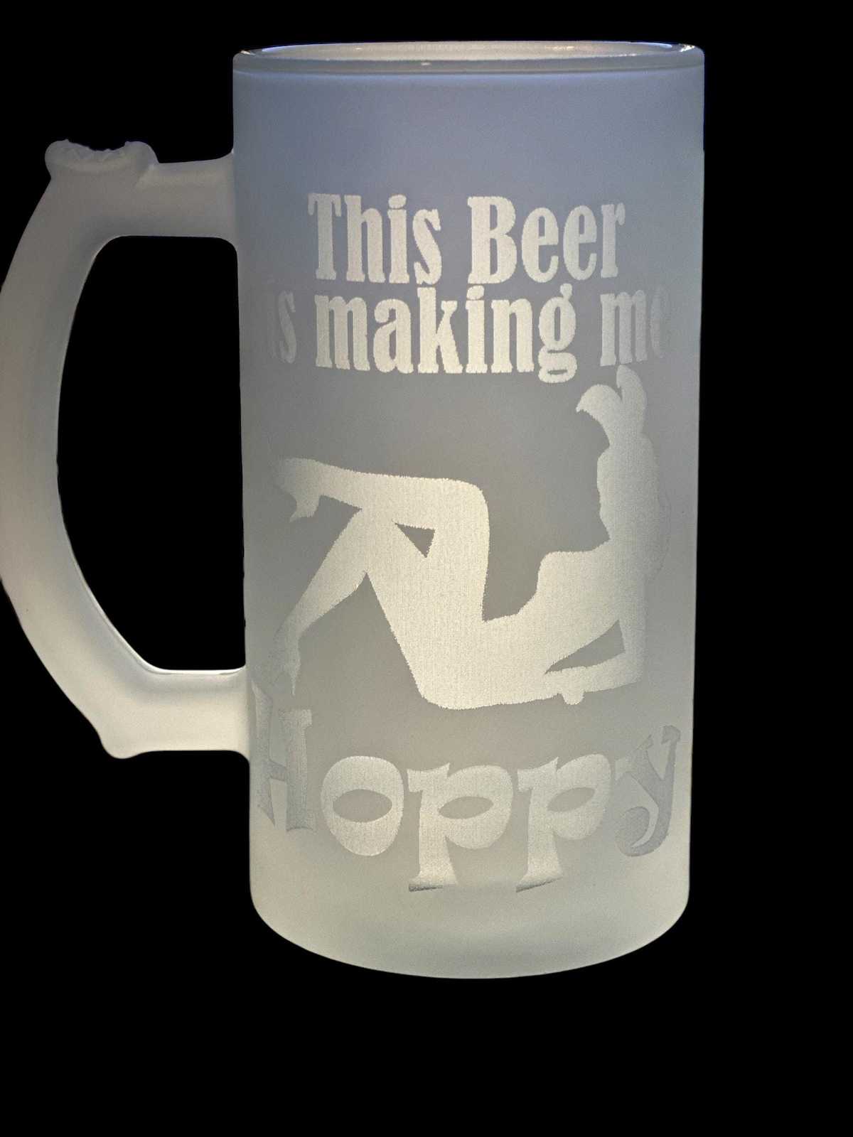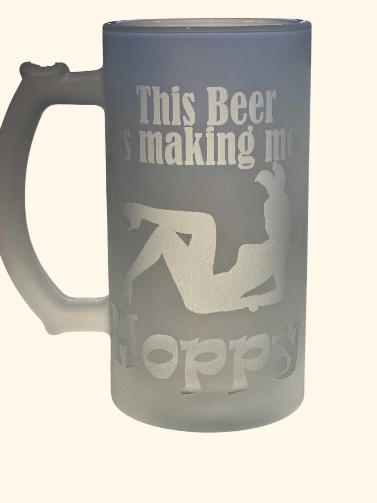 Beer makes me hoppy frosted beer mug. Perfect gift for the beer lover in your life.