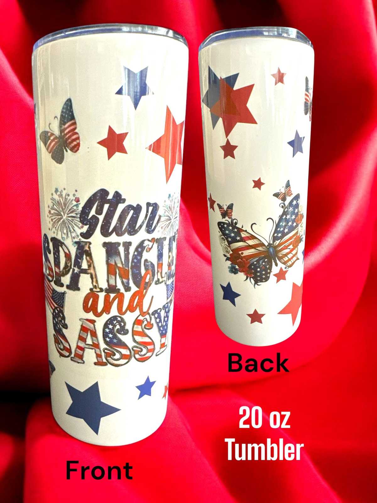 Enjoy your favorite beverages on the go with our 20oz Skinny Tumbler, "Star Spangled and Sassy." Designed to keep your drinks hot for three hours and cold for nine hours, this tumbler is perfect for any situation. Its durable stainless steel and BPA-free plastic construction ensures that your beverage stays safe and fresh. Featuring a convenient slide lock lid, this tumbler is both spill-proof and suitable for hot and cold beverages. The multicolor design adds a touch of style, while the double-walled insulation maintains the temperature of your drink. With a capacity of 20oz and dimensions of 9.5 inches in height and 2.625 inches in width, it's the ideal companion for your daily routine.