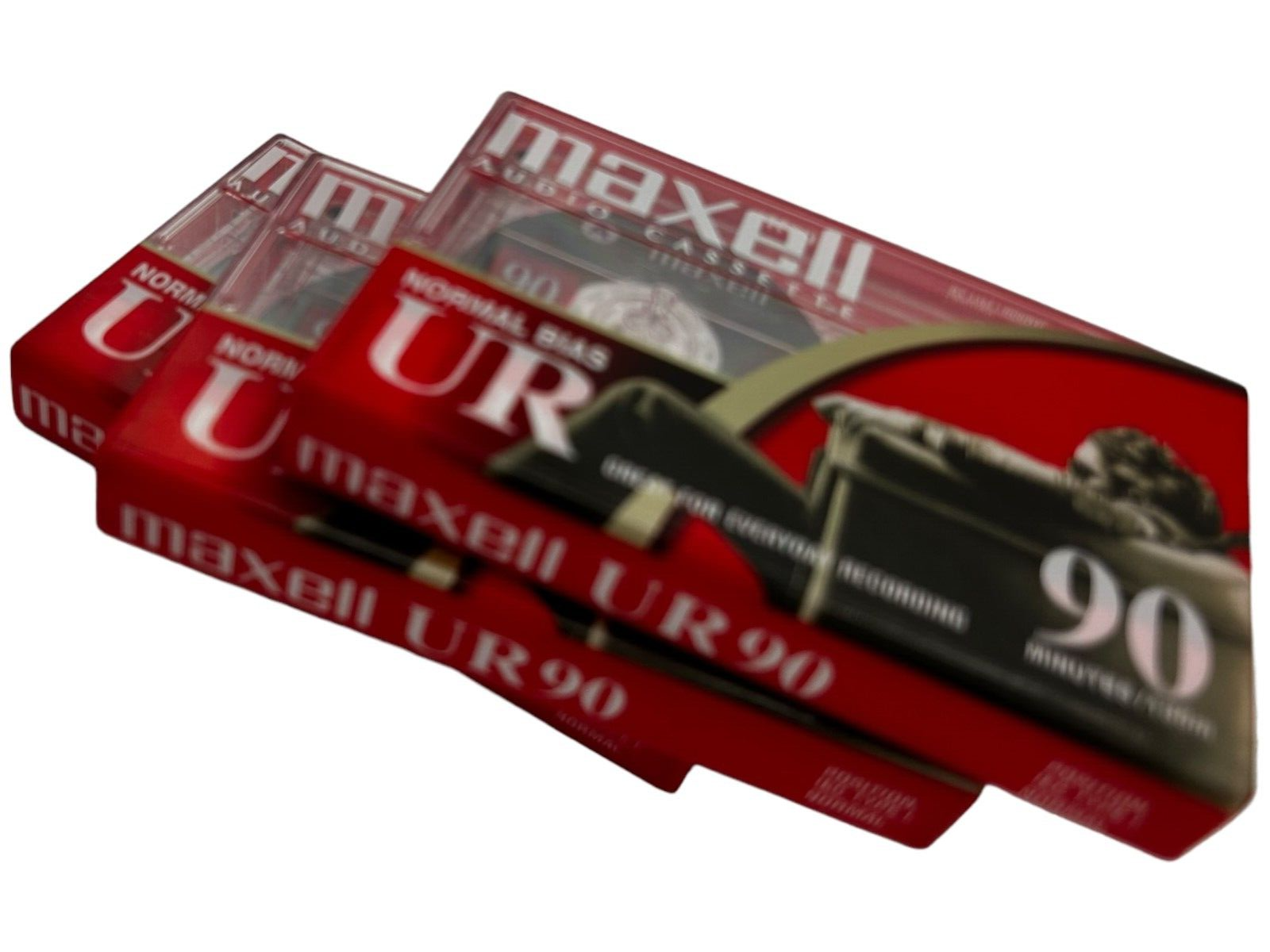 Maxell UR 90 Normal Bias Blank Audio Recording Cassette Tape, Low Noise, 90 Minute Recording Time, 3 factory sealed cassette tapes